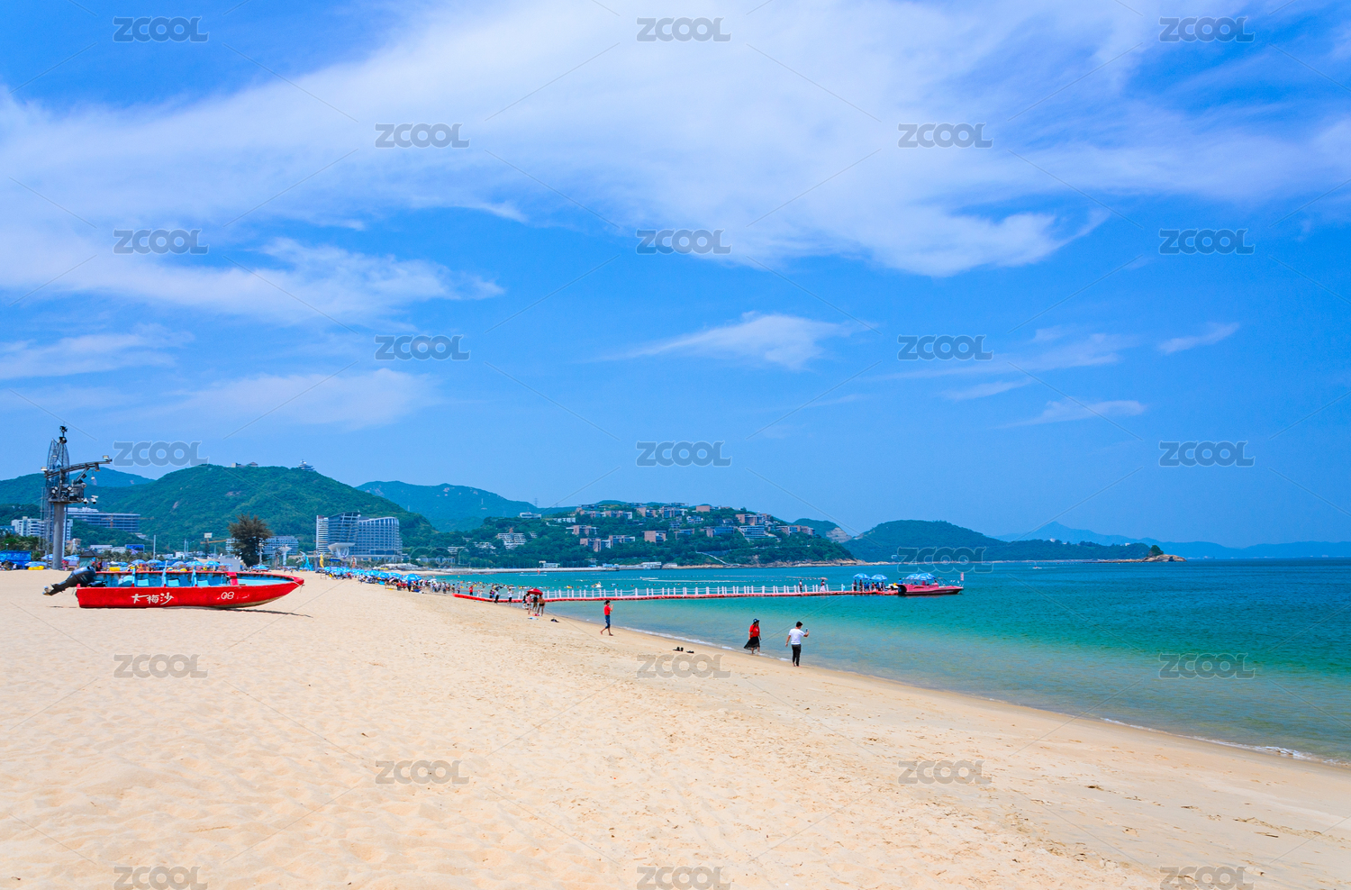 广东惠州巽寮湾海滩美丽风光及天际线远眺