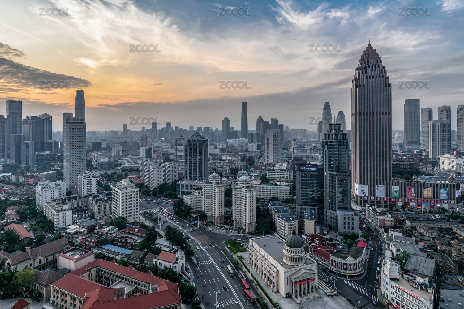 天津城市市中心现代与欧式建筑风光航拍