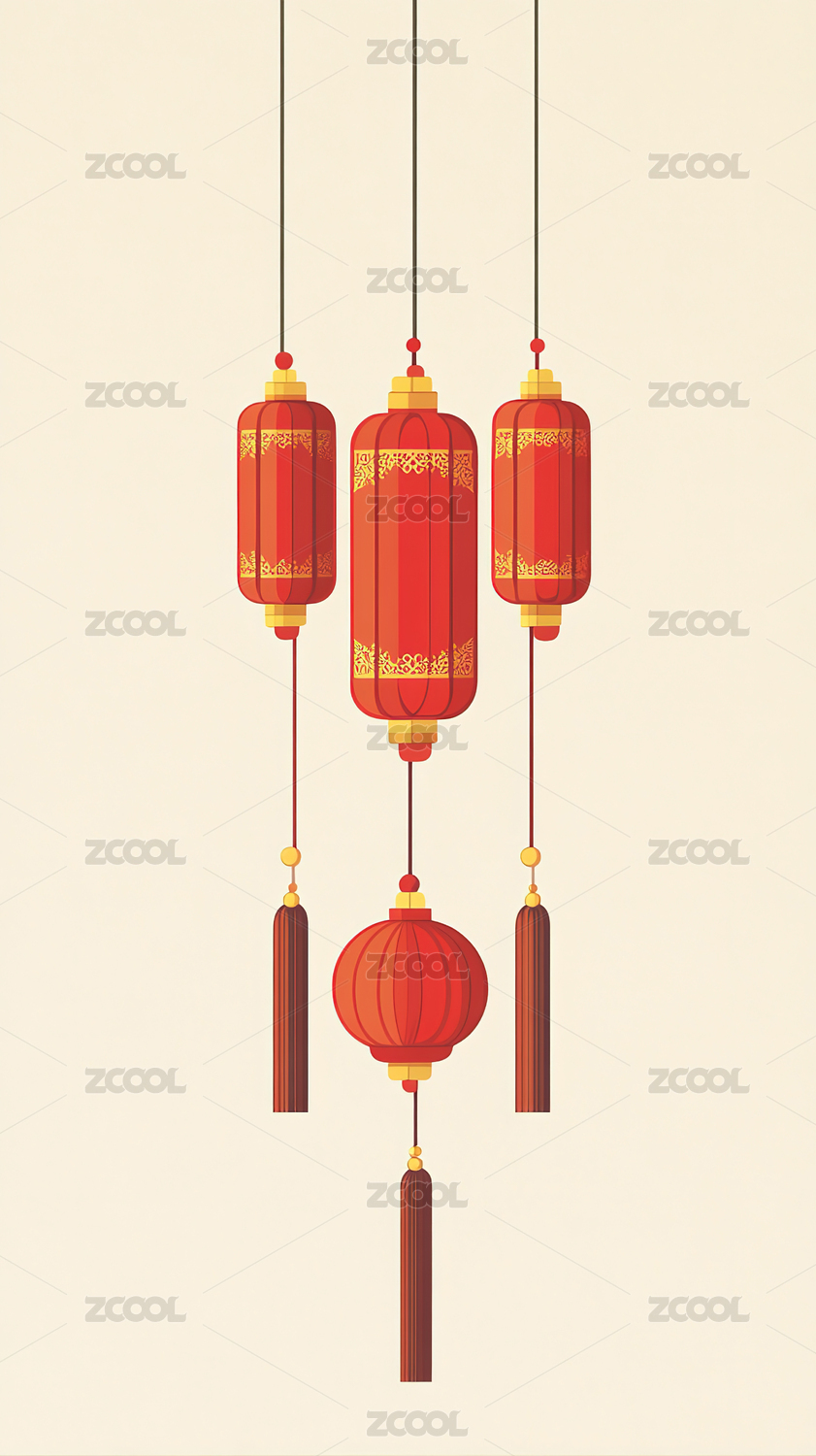 悬挂的红色灯笼元素