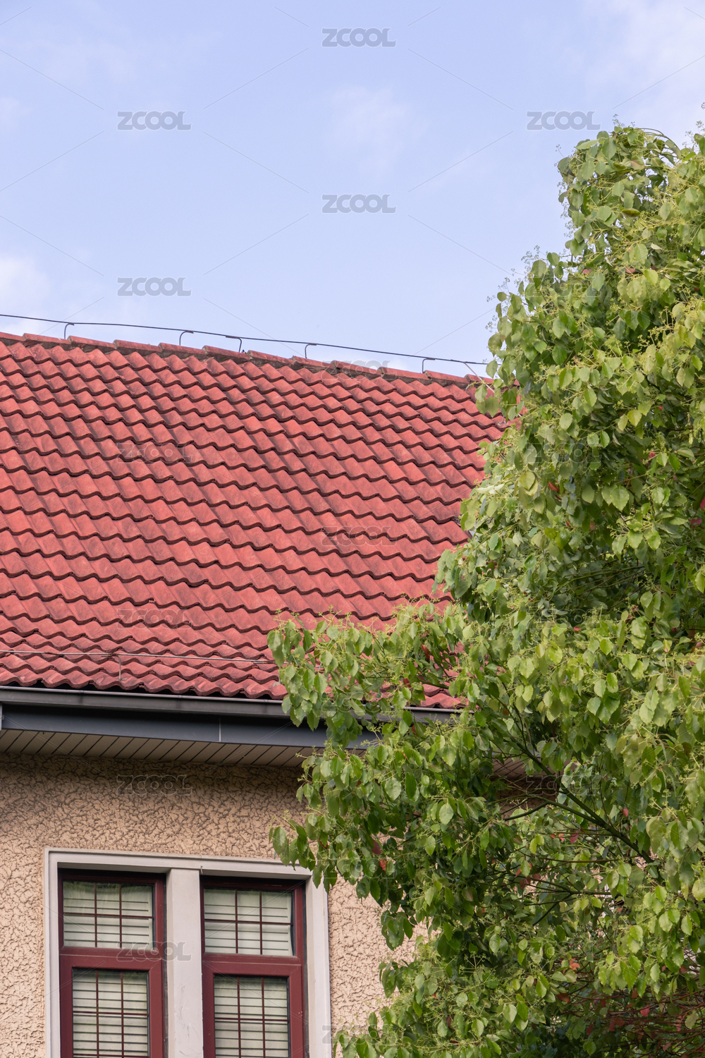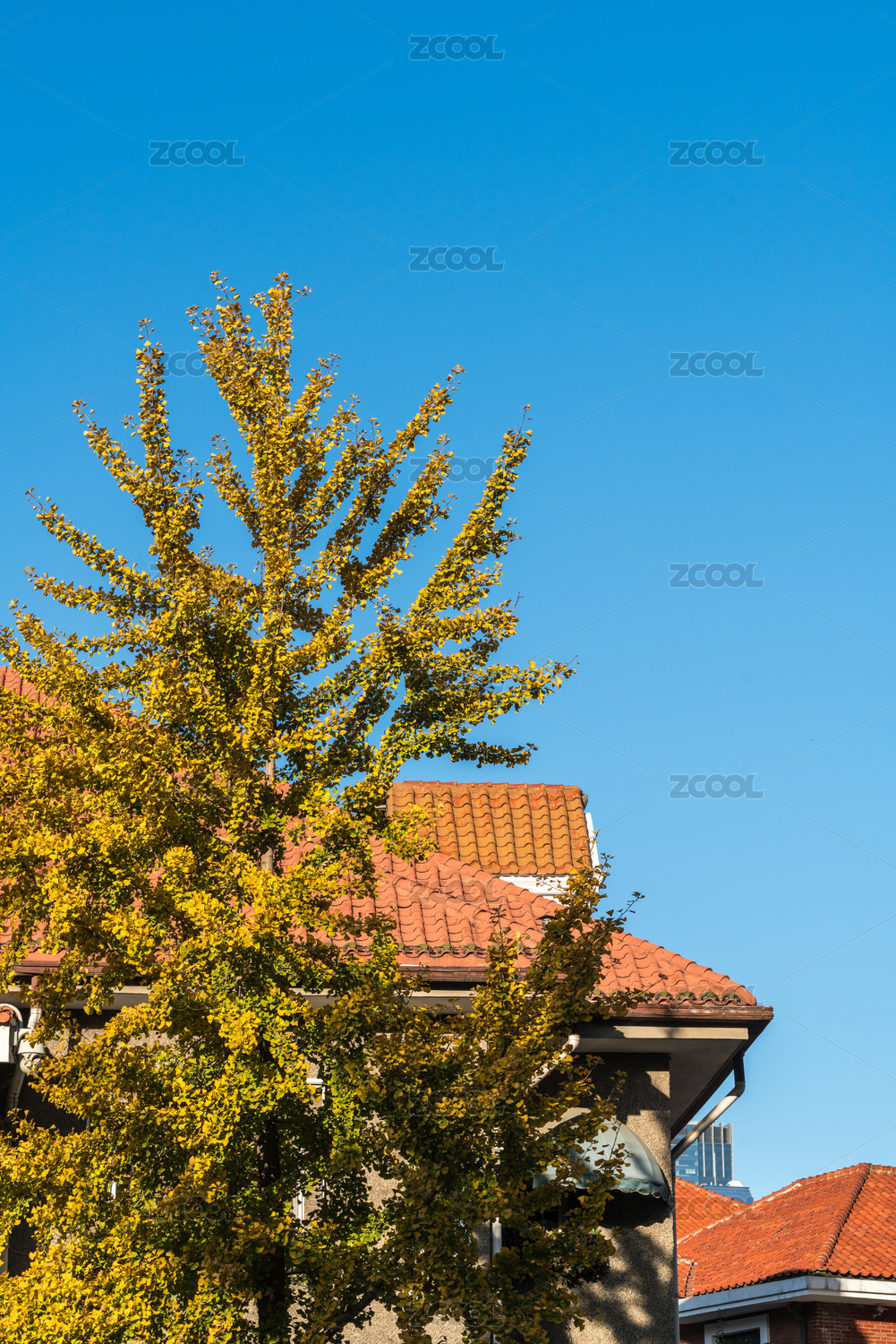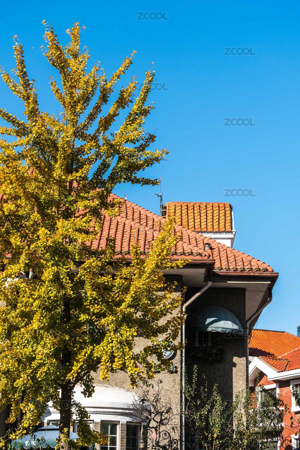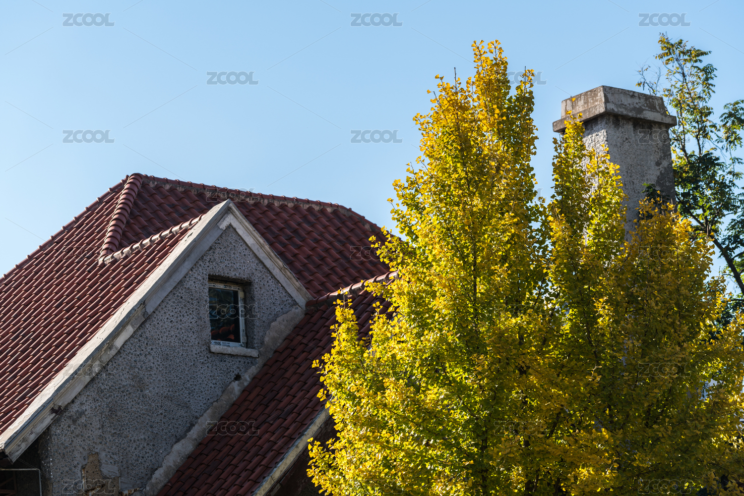 晴空秋叶下的红砖家园
