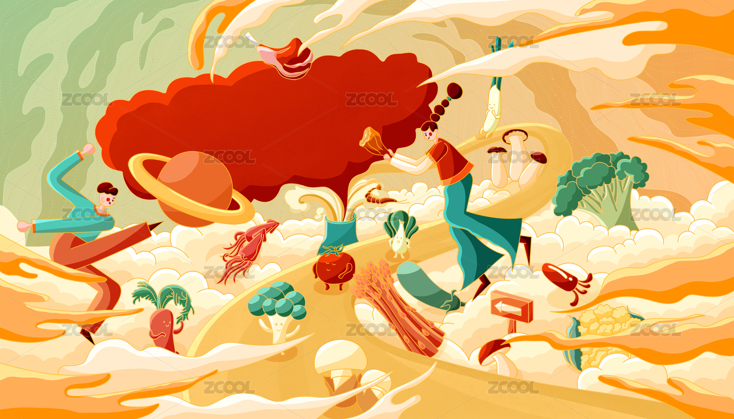 扁平肌理纹理噪点美食西餐插画龙虾螃蟹扇贝