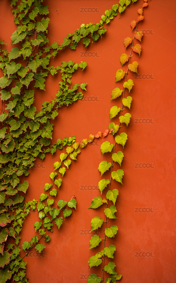 中国红,红色,背景,爬山虎,万年青,藤蔓,秋天