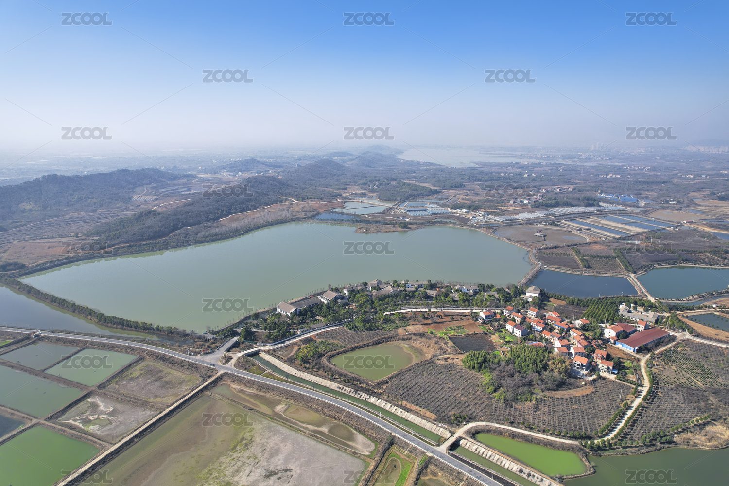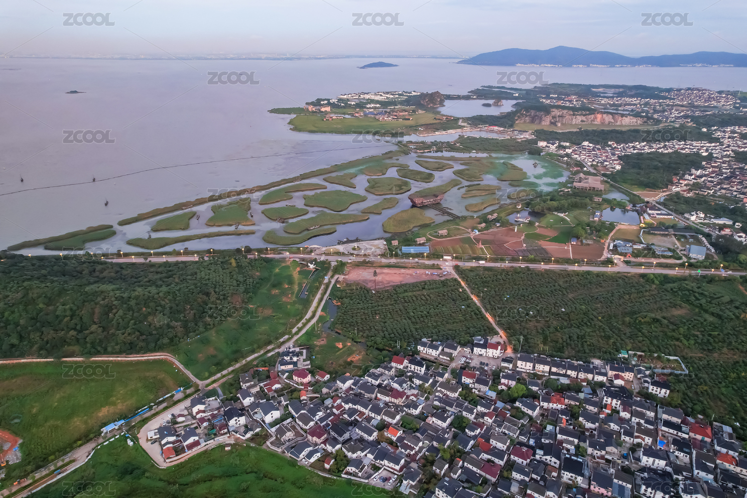 航拍武汉江夏区鲁湖(三门湖)风光和鲁湖联