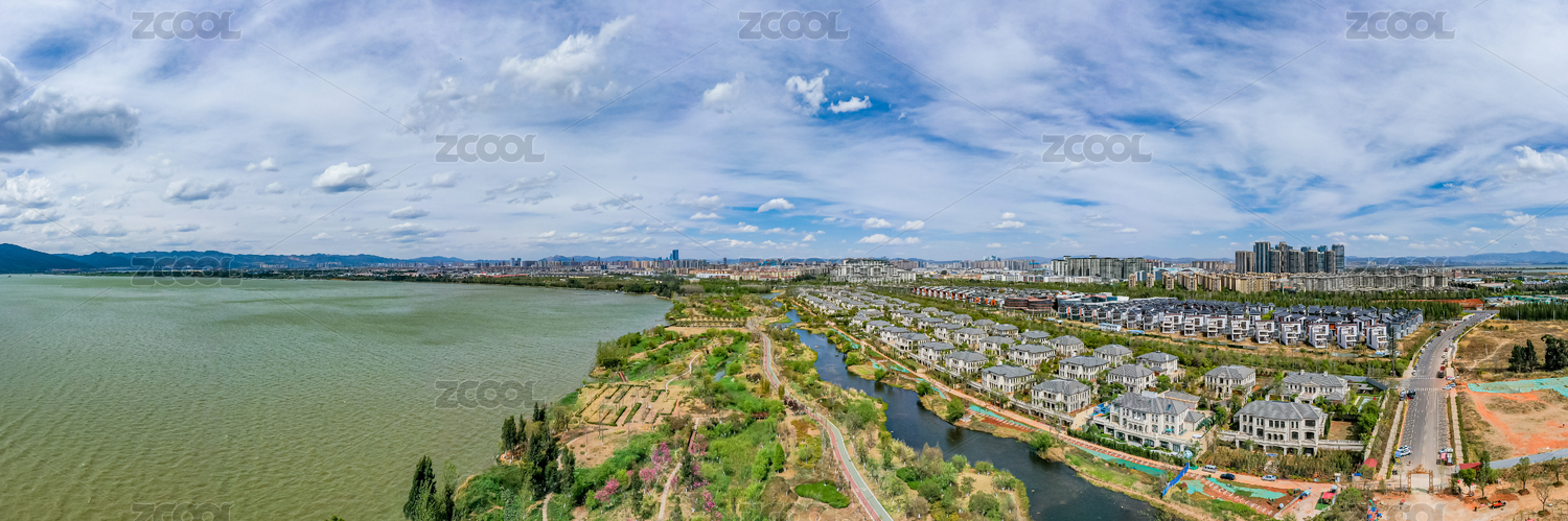 航拍云南昆明滇池星海半岛湿地公园生态自然