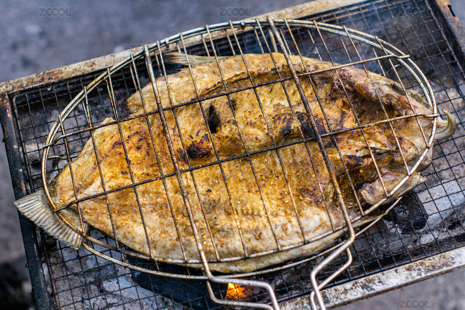 暗红色背炉子里吊起来的烤焦的羊排暖色暗调