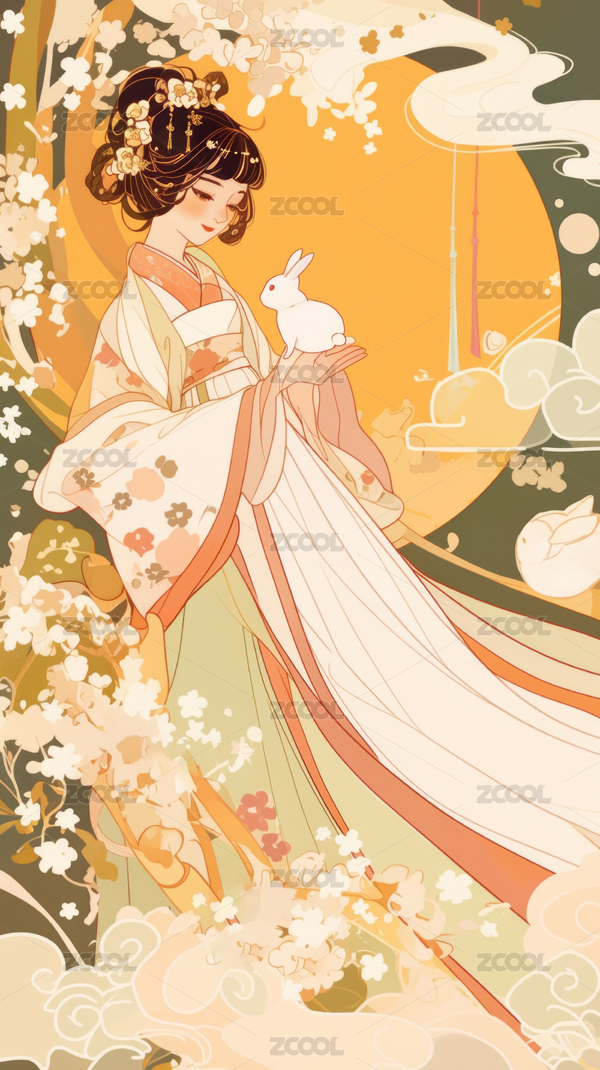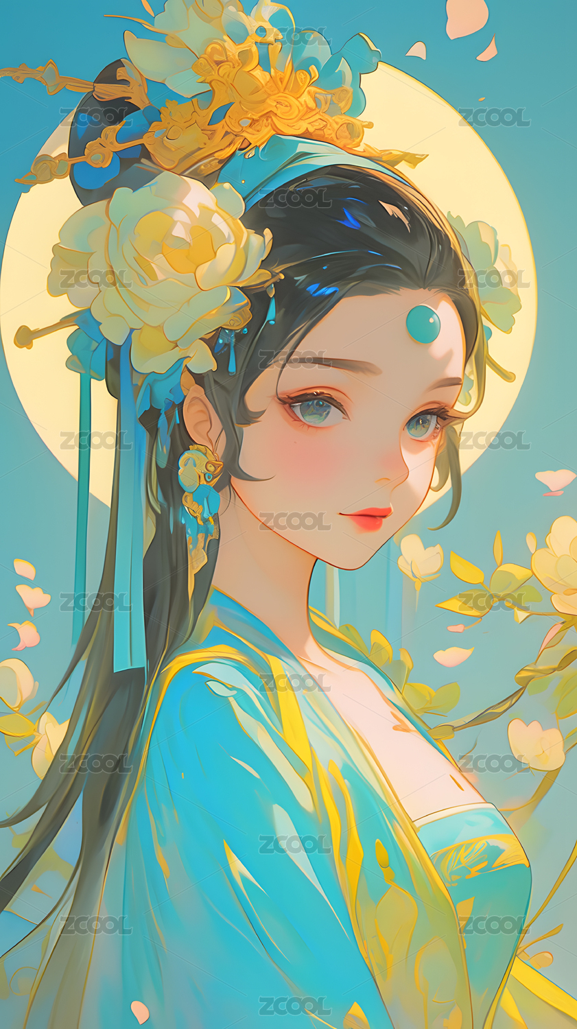 古风国潮汉服美女节日节气花朵荷梅水仙牡丹