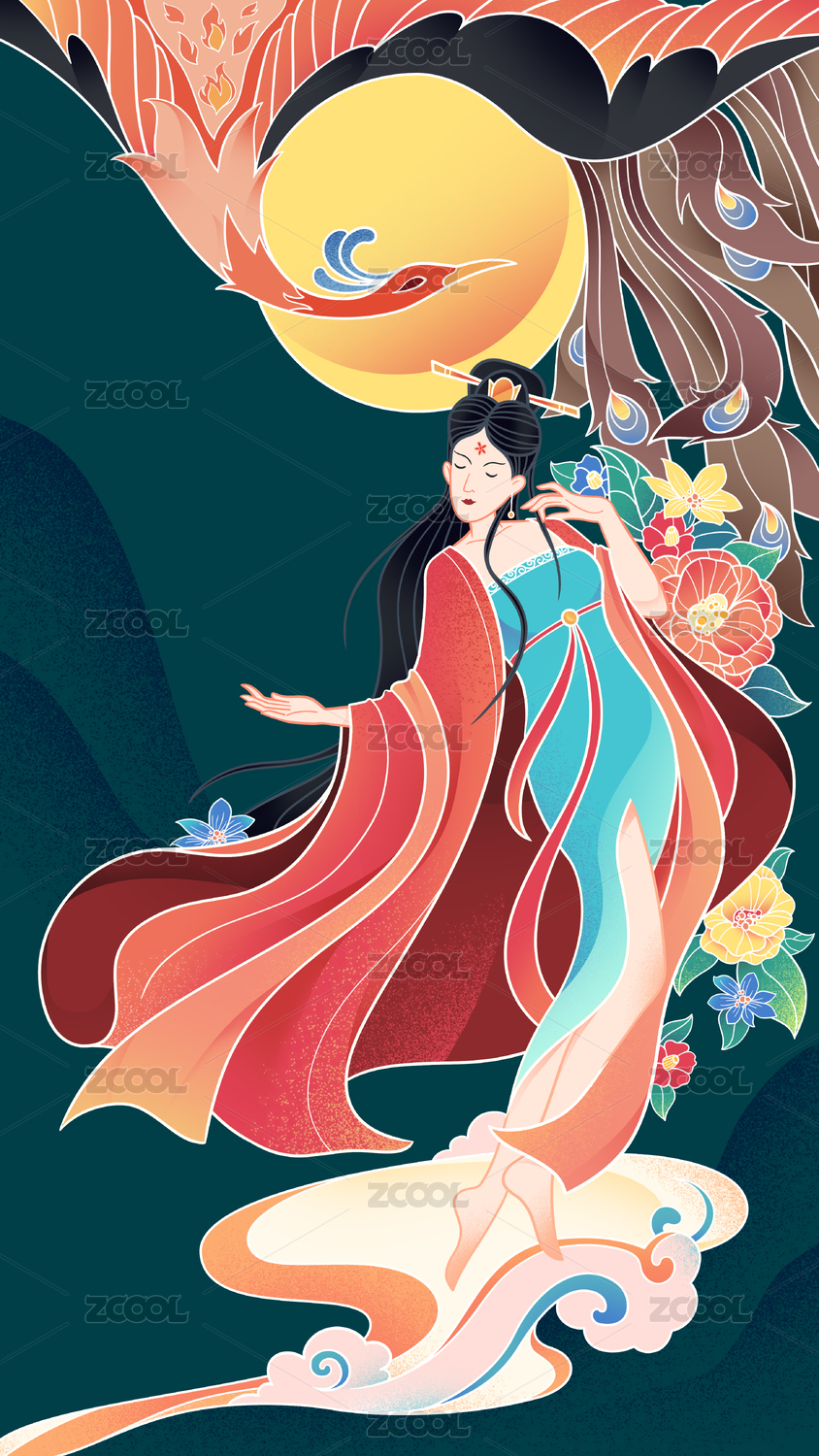 HEKMDTK202211,拟人,古风,人物,元素,装饰,国风,插画,图案,植物