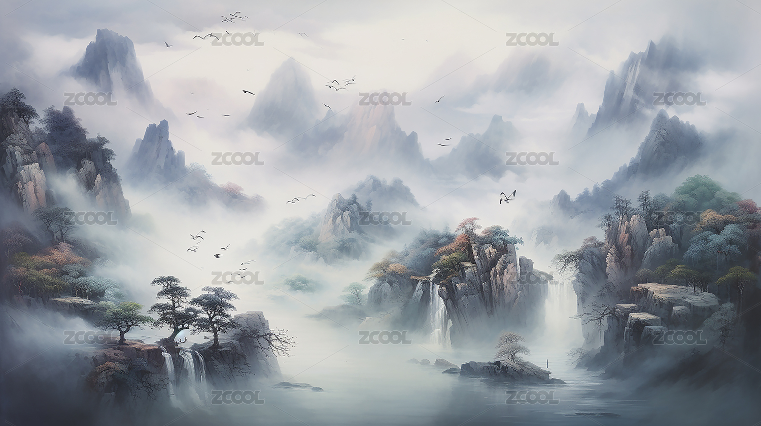 传统,线条,国风,流动,云,复古风格,烟雾,植物,河流,背景