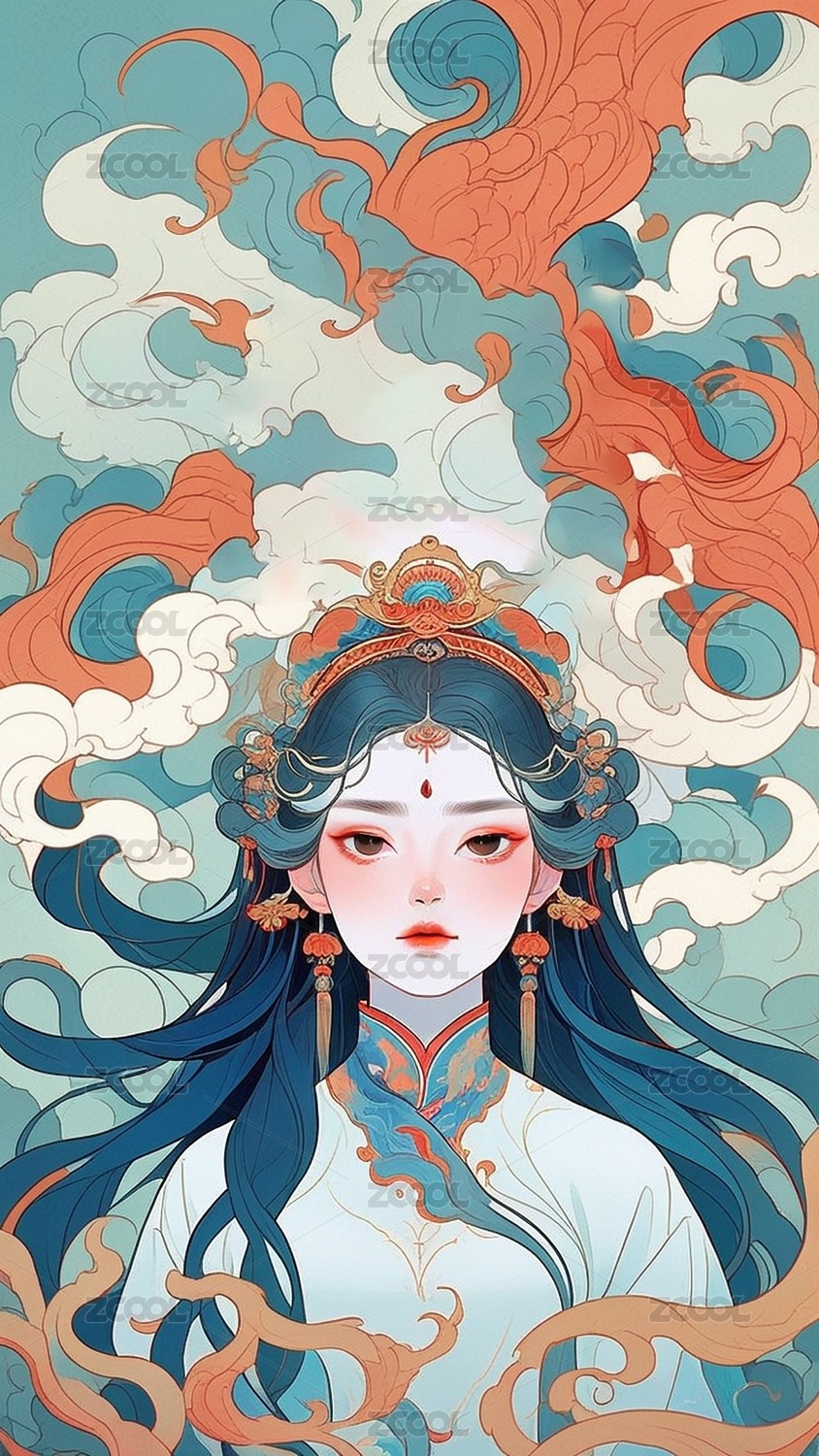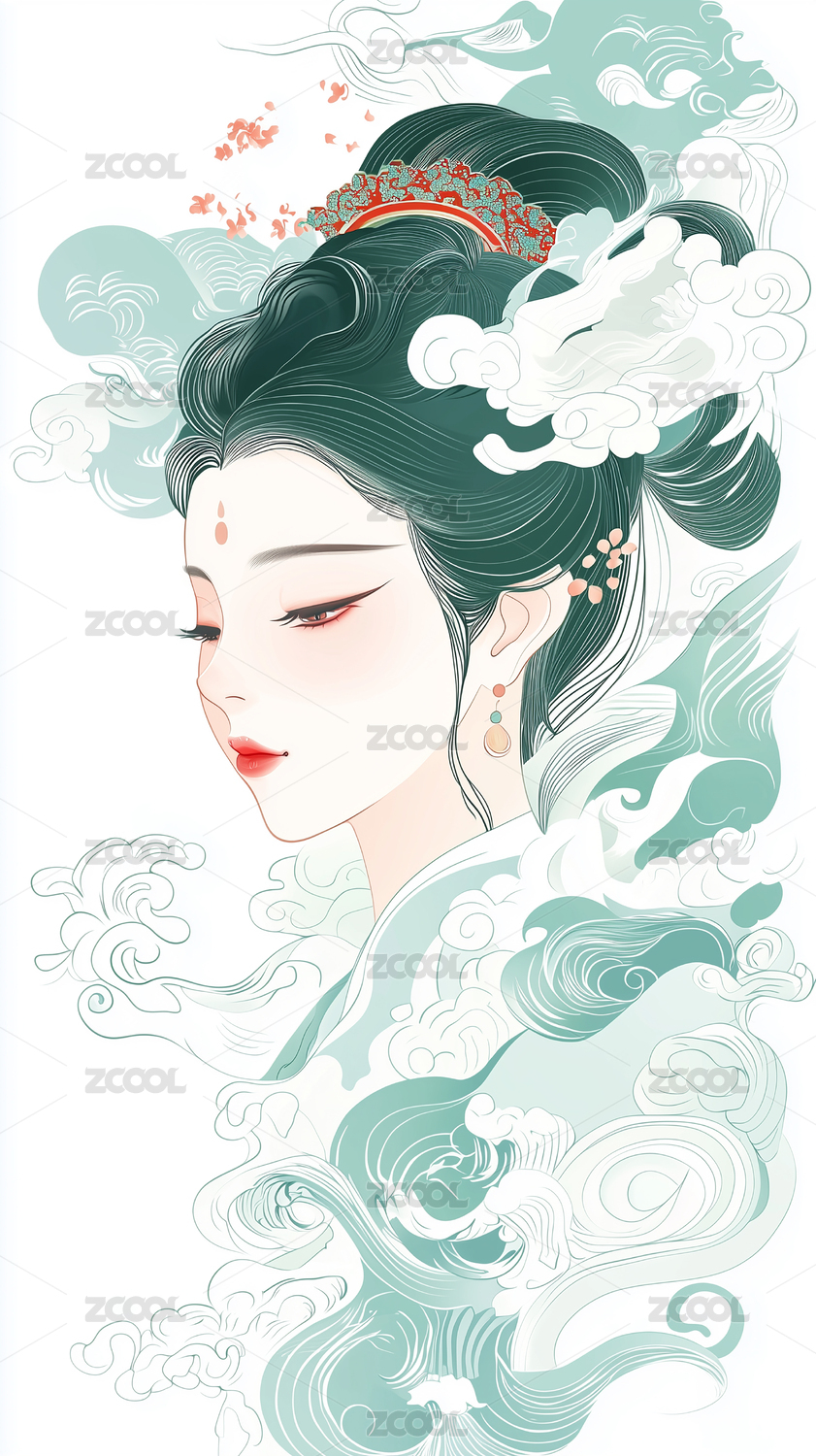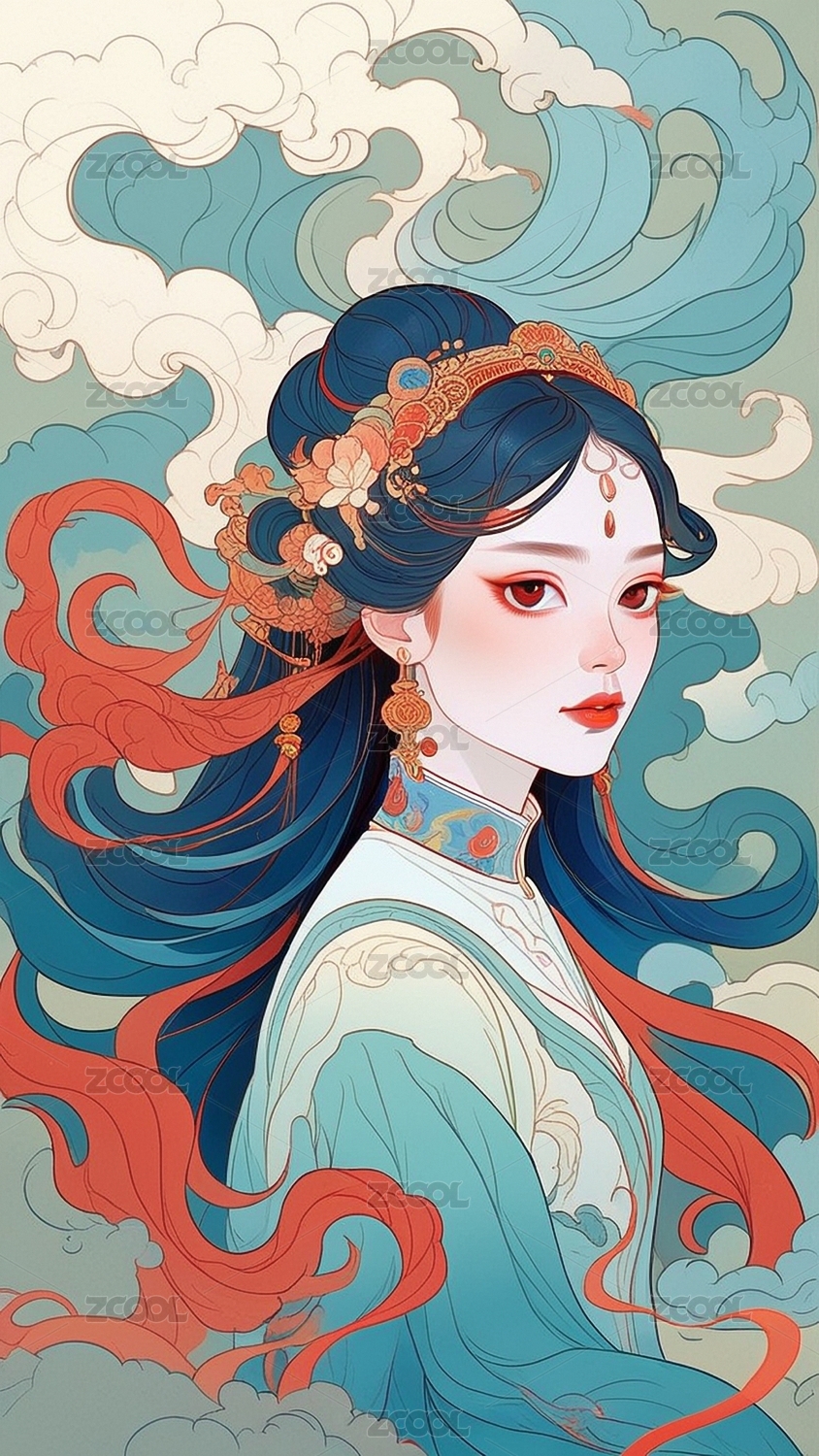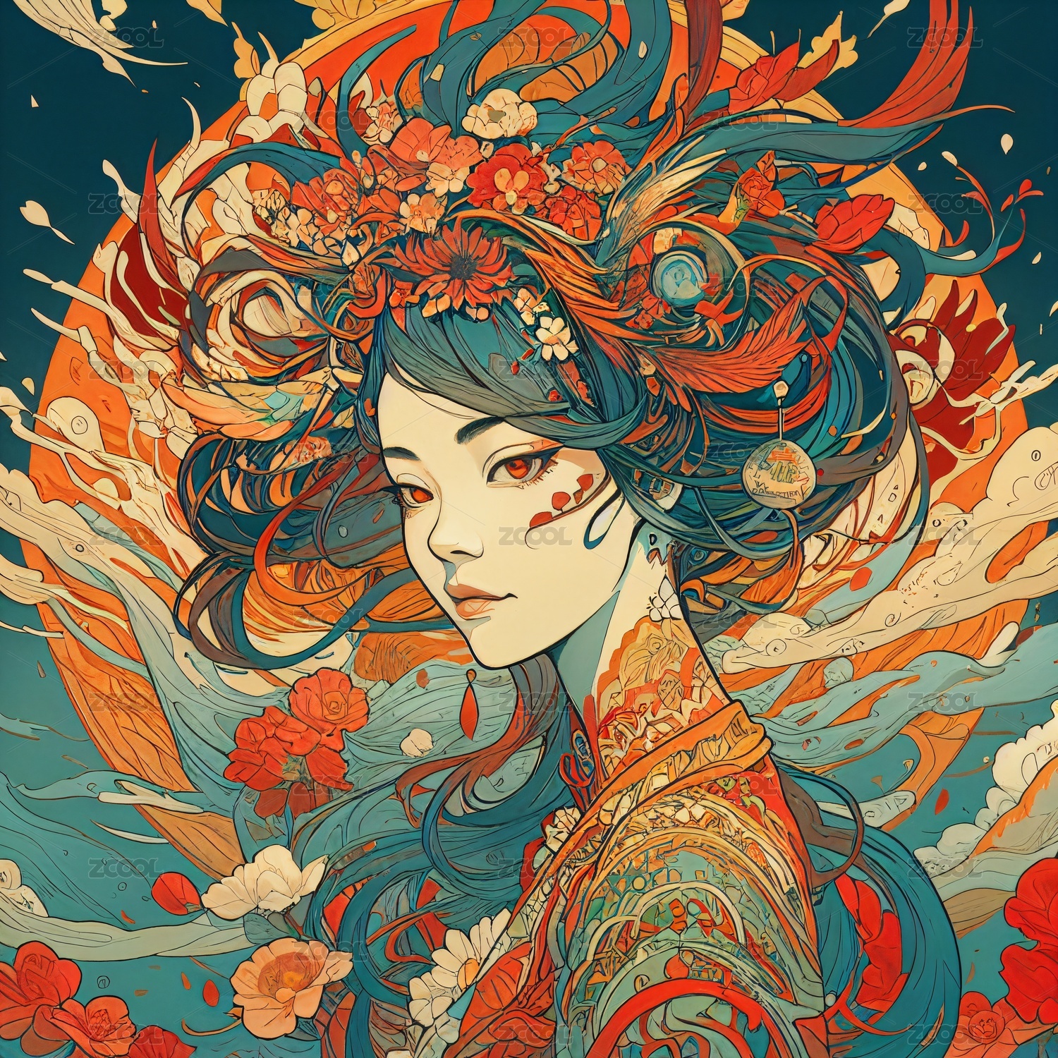 国潮,中国风,女孩,人物,插画,写意,创意,艺术,AIGCFG,古典