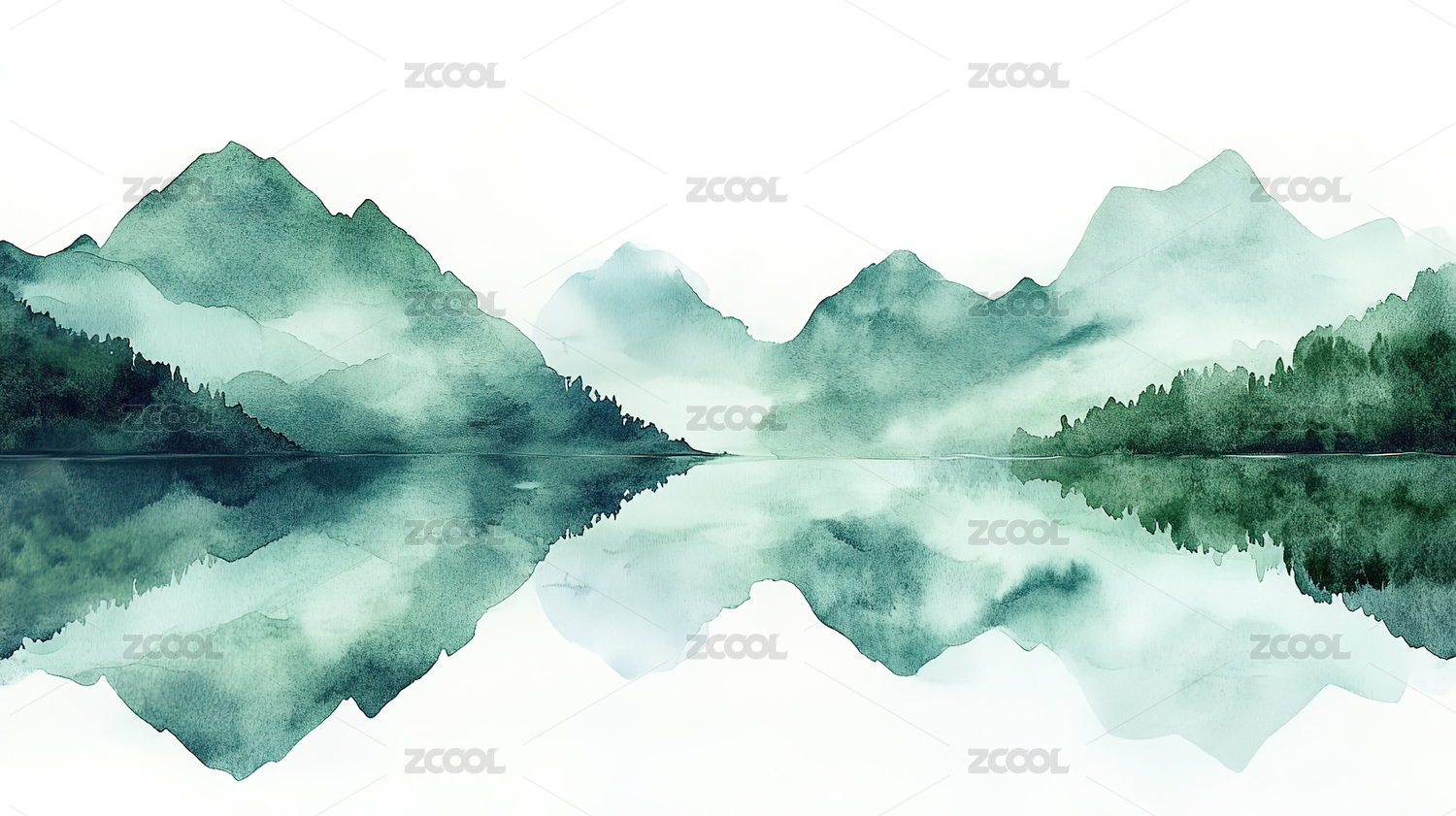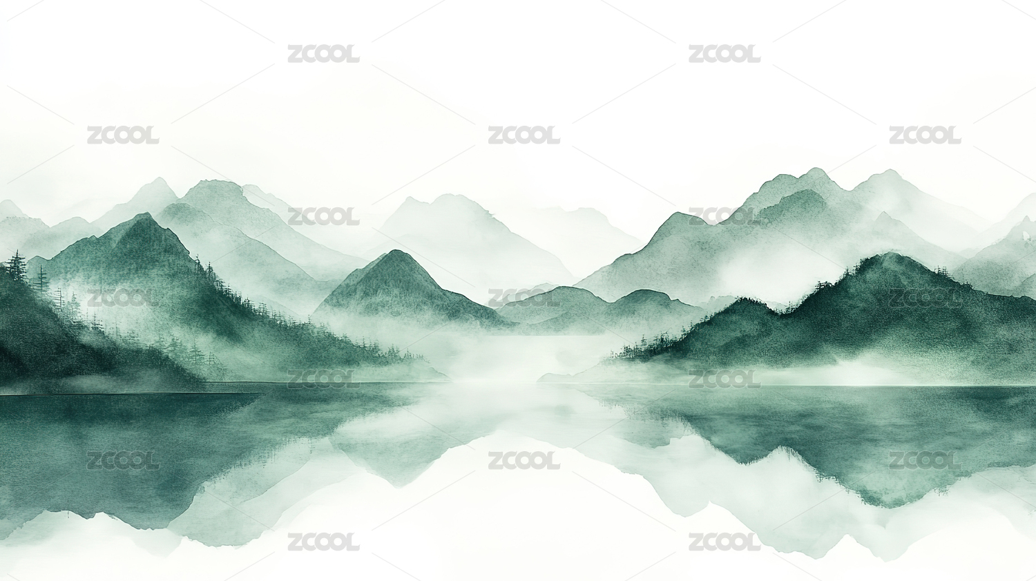 插画,山,水,水墨画,中国风,山水,意境,风景,自然,地形