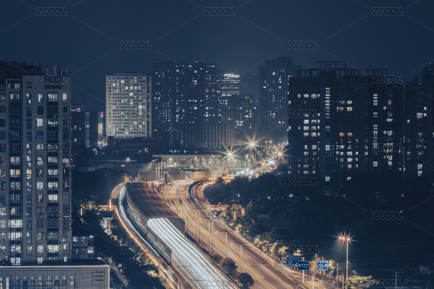 夜晚的城市立体交通