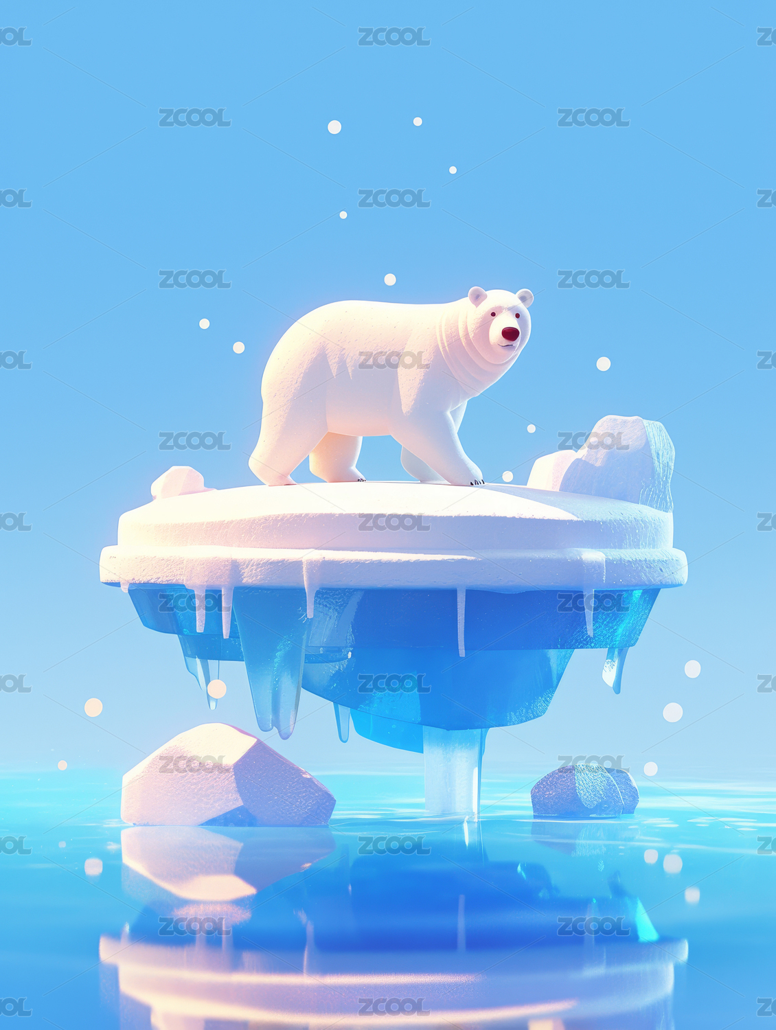 生活在北冰洋上的北极熊早晨起来捕食并教育孩子如何捕捉鲱鱼插画背景海报