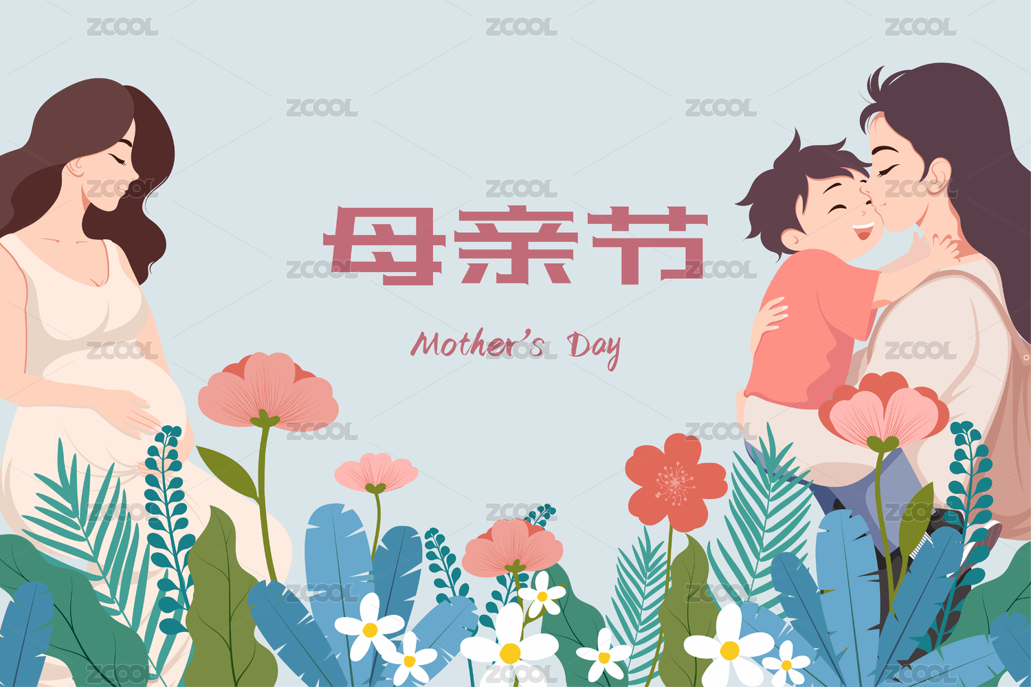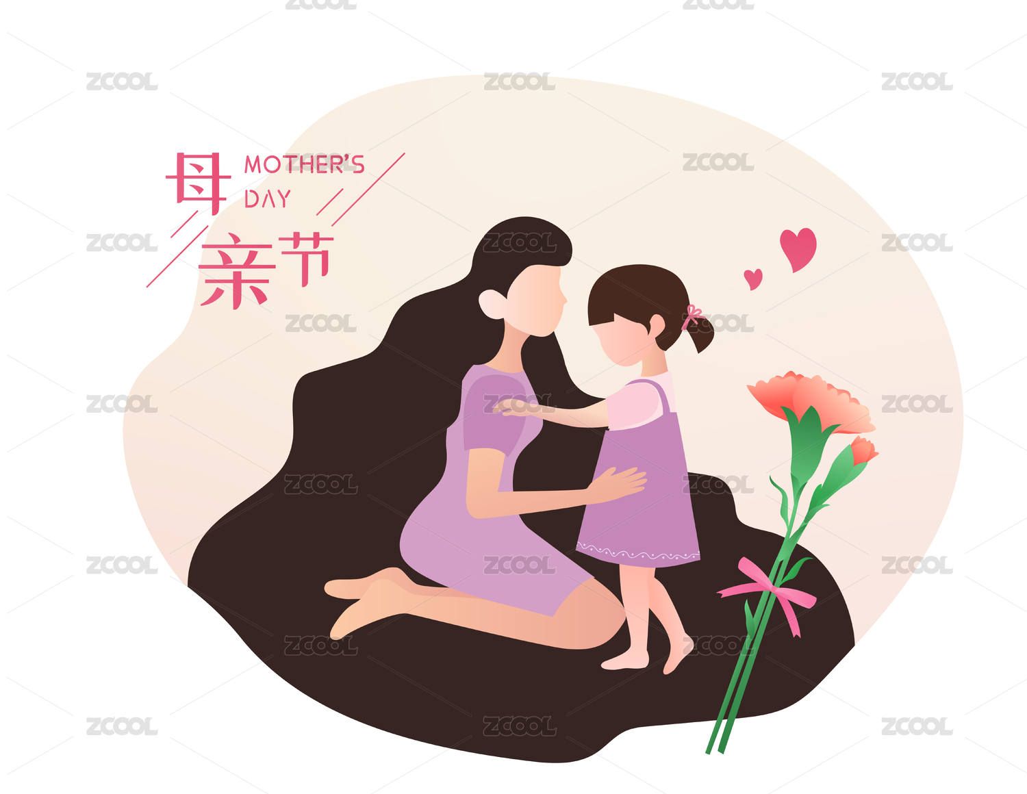 妈妈抱着小孩眼里充满爱母亲节矢量插画海报