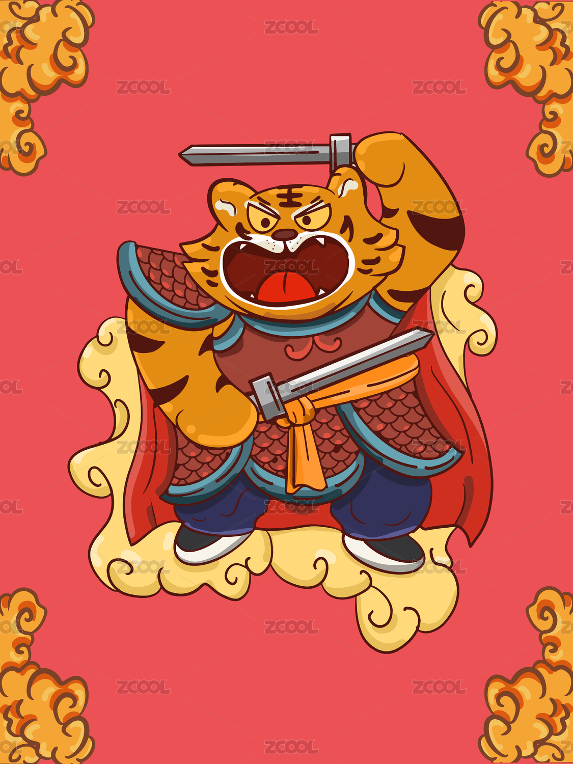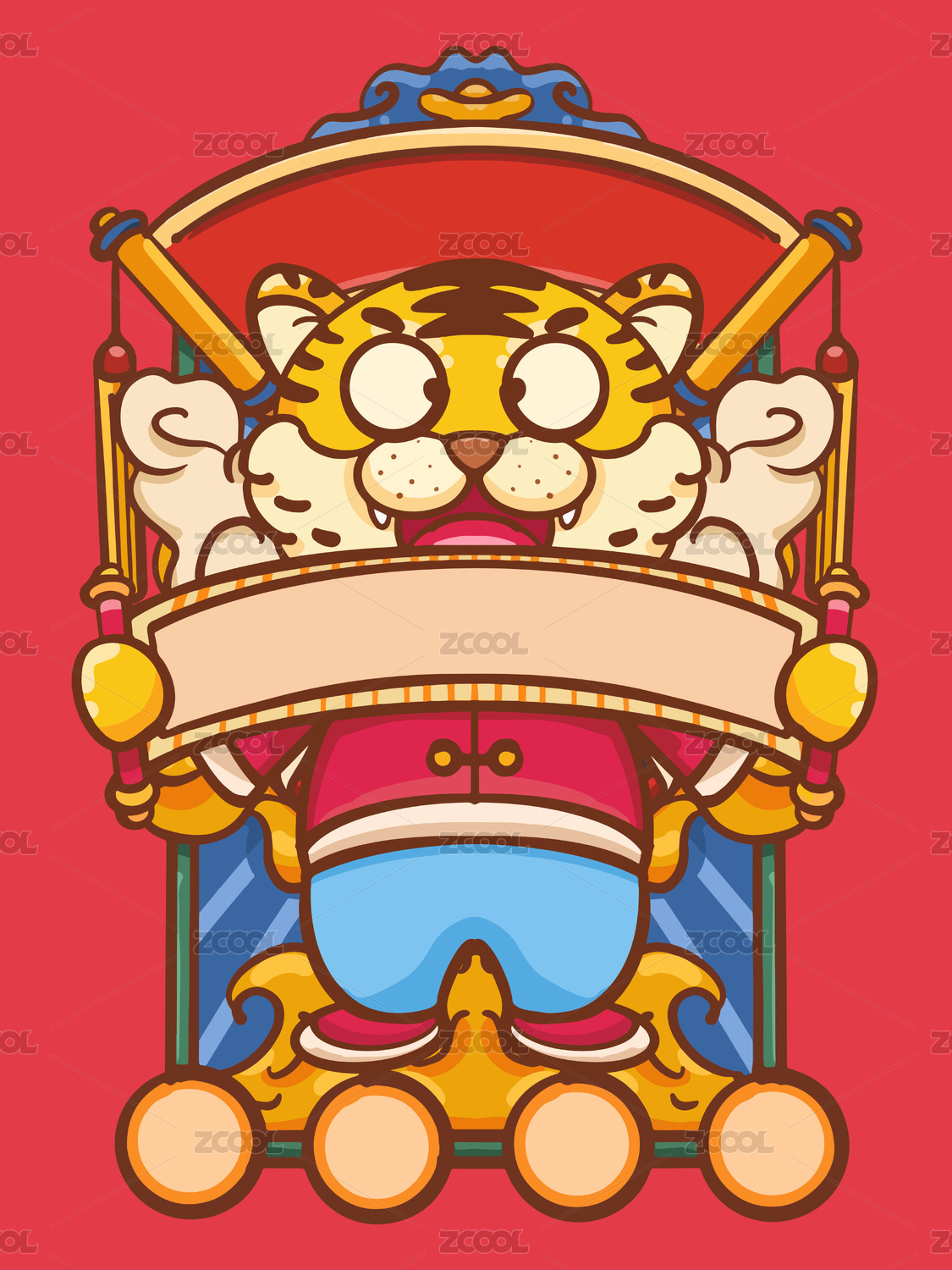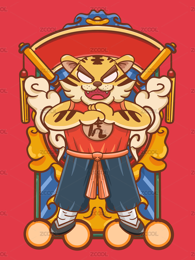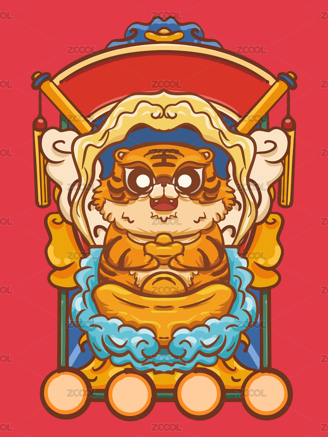 虎年,卡通,虎,插画,中国风,新年,2022,年画,可爱,虎神