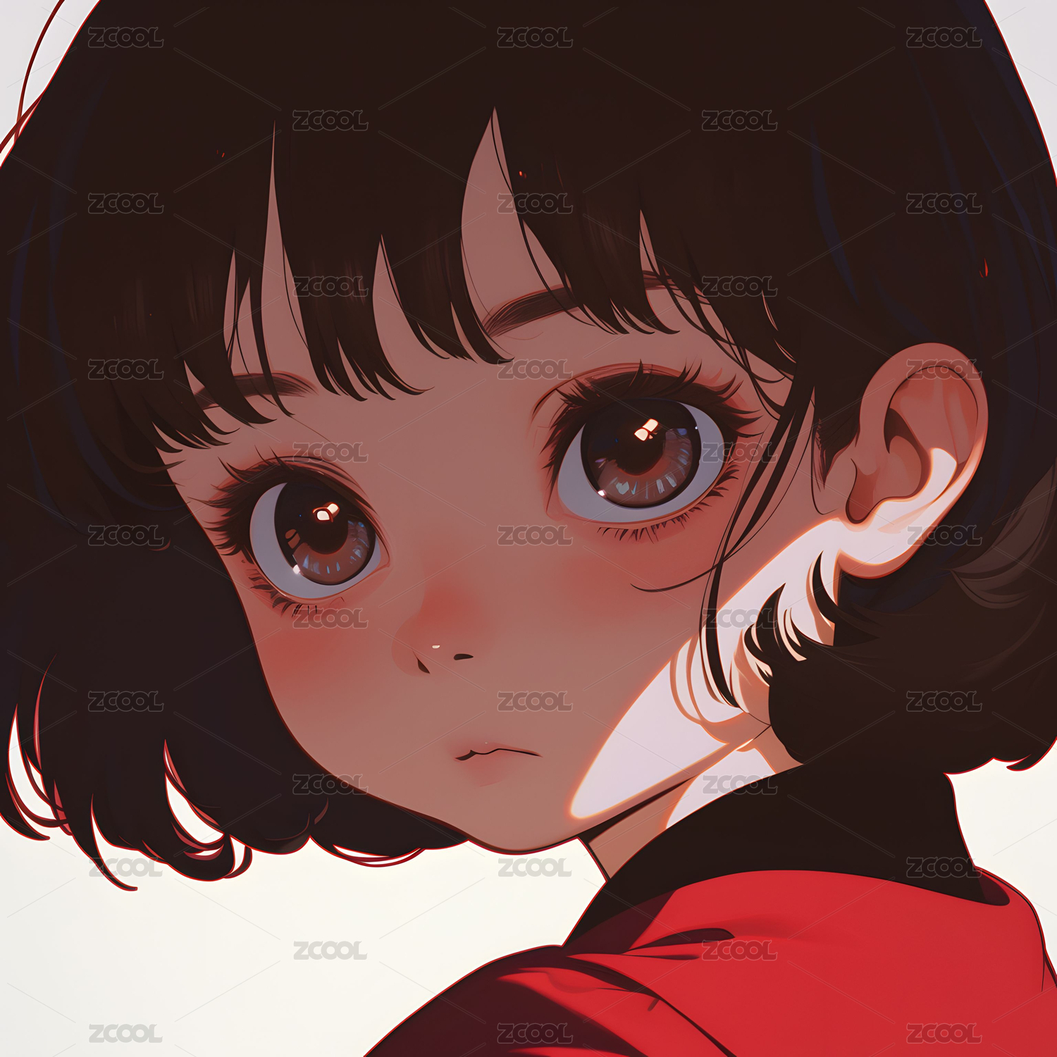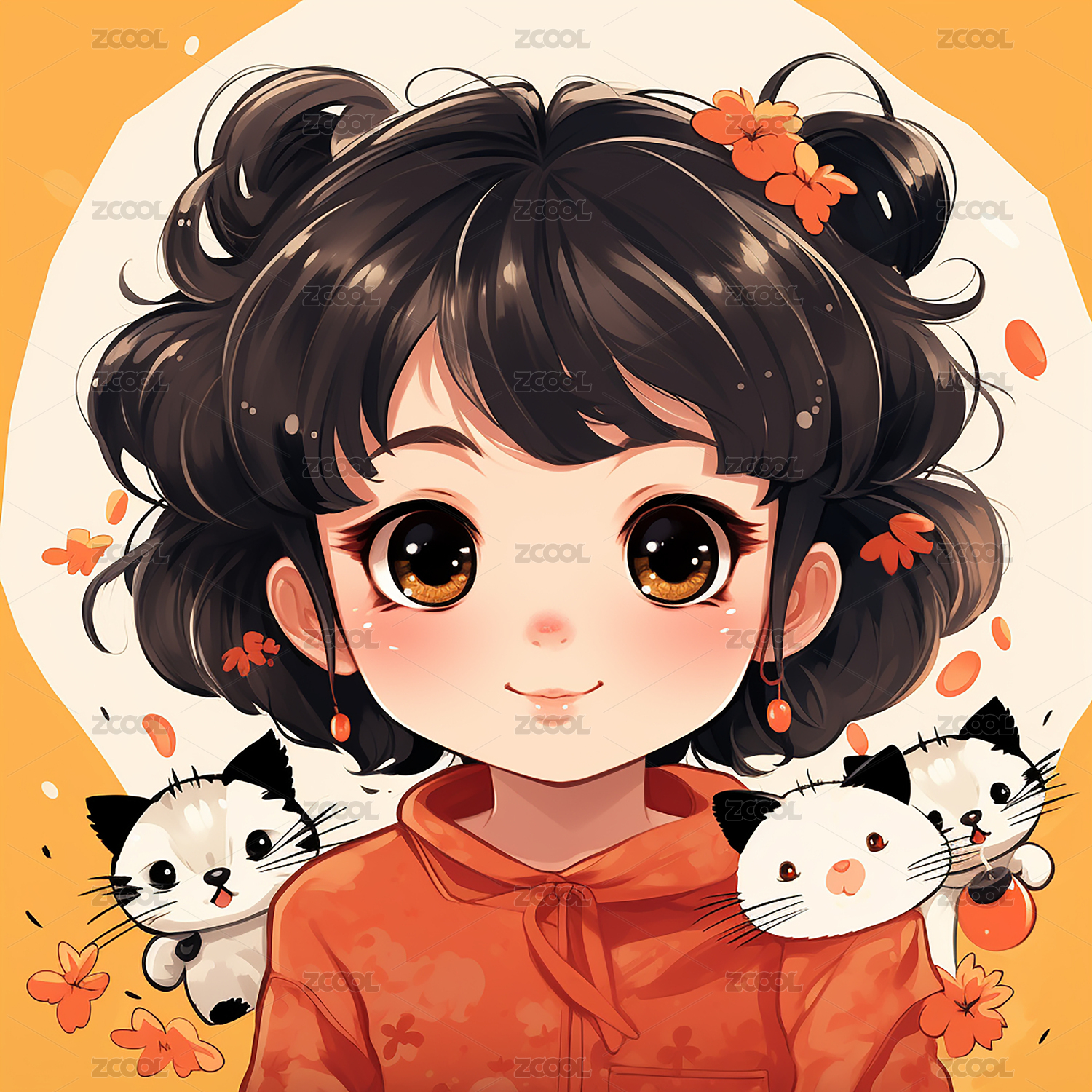 手绘卡通可爱的穿着红色唐装的女孩插画