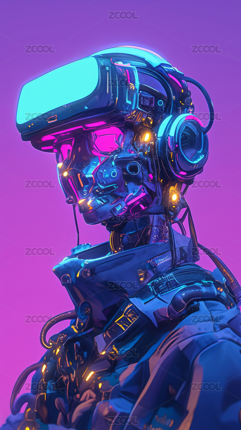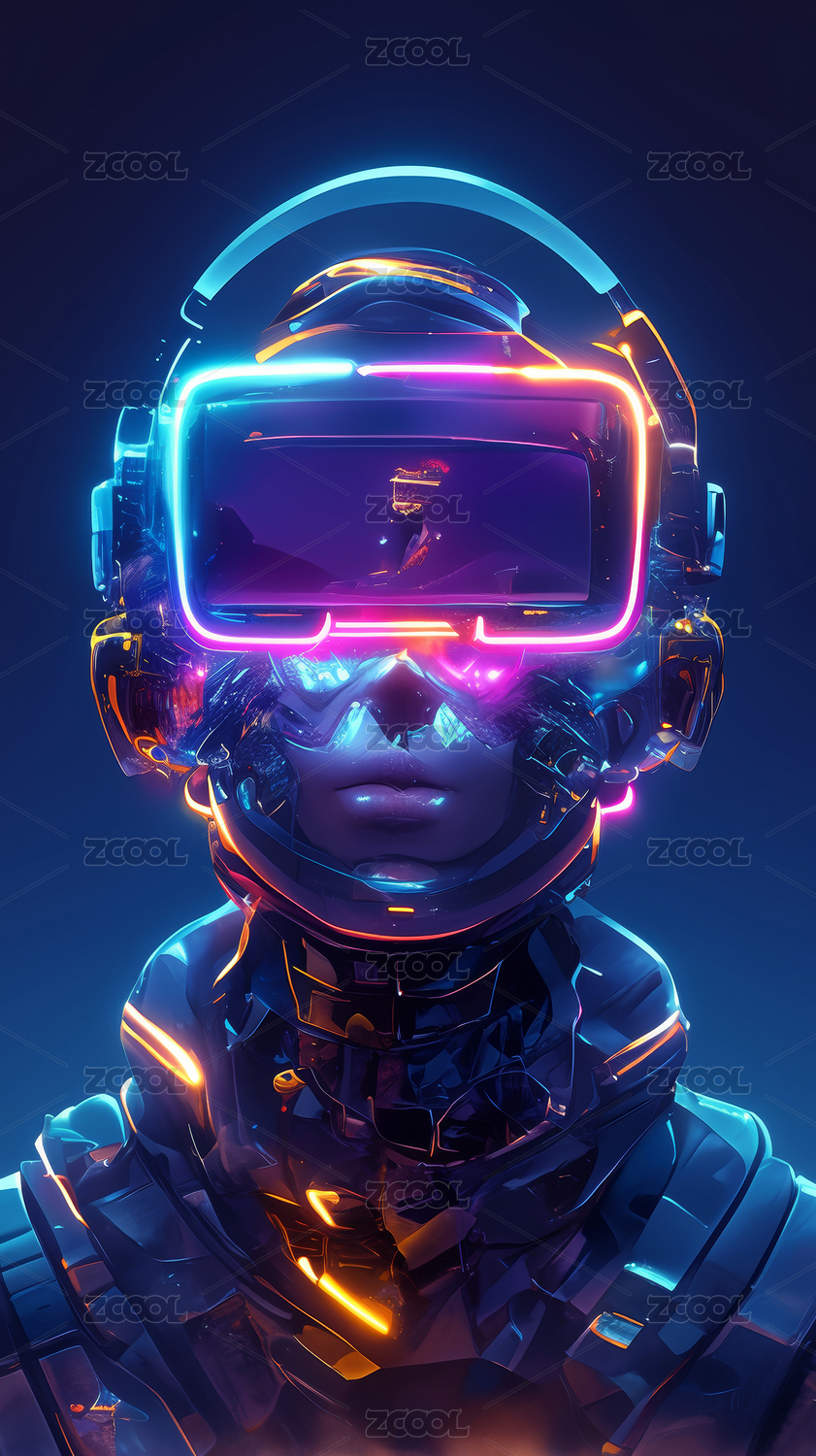 穿冲锋衣的男性戴着VR眼镜赛博朋克插画