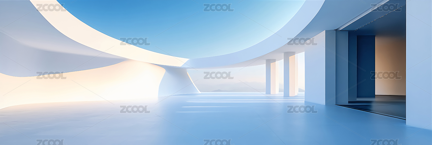 3D,插画,建筑,极简,背景,圆形,地板,地面,大厅,室内