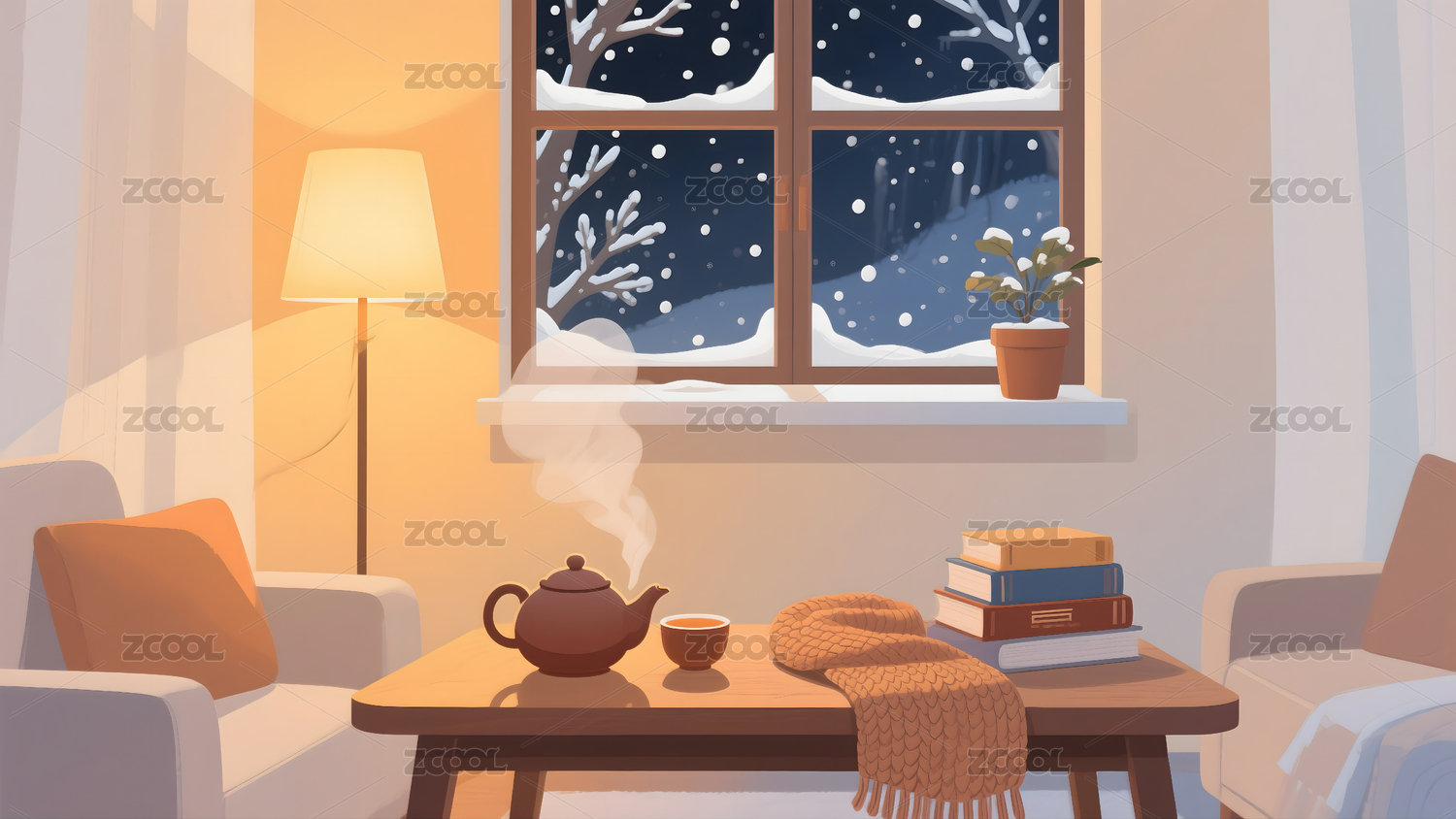 雪景窗边的温馨小屋
