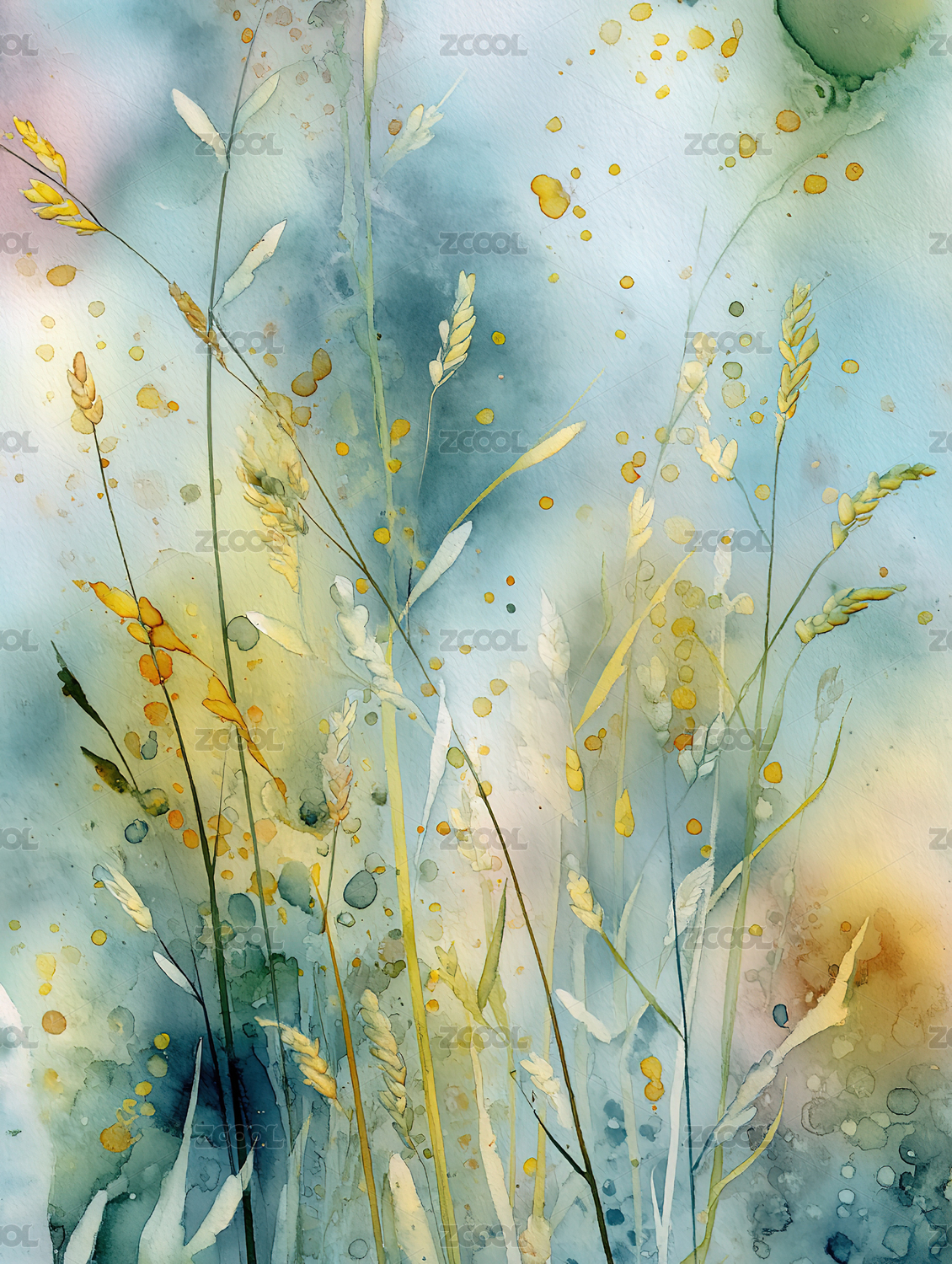 抽象意境水彩画花朵植物装饰画纹理底纹素材