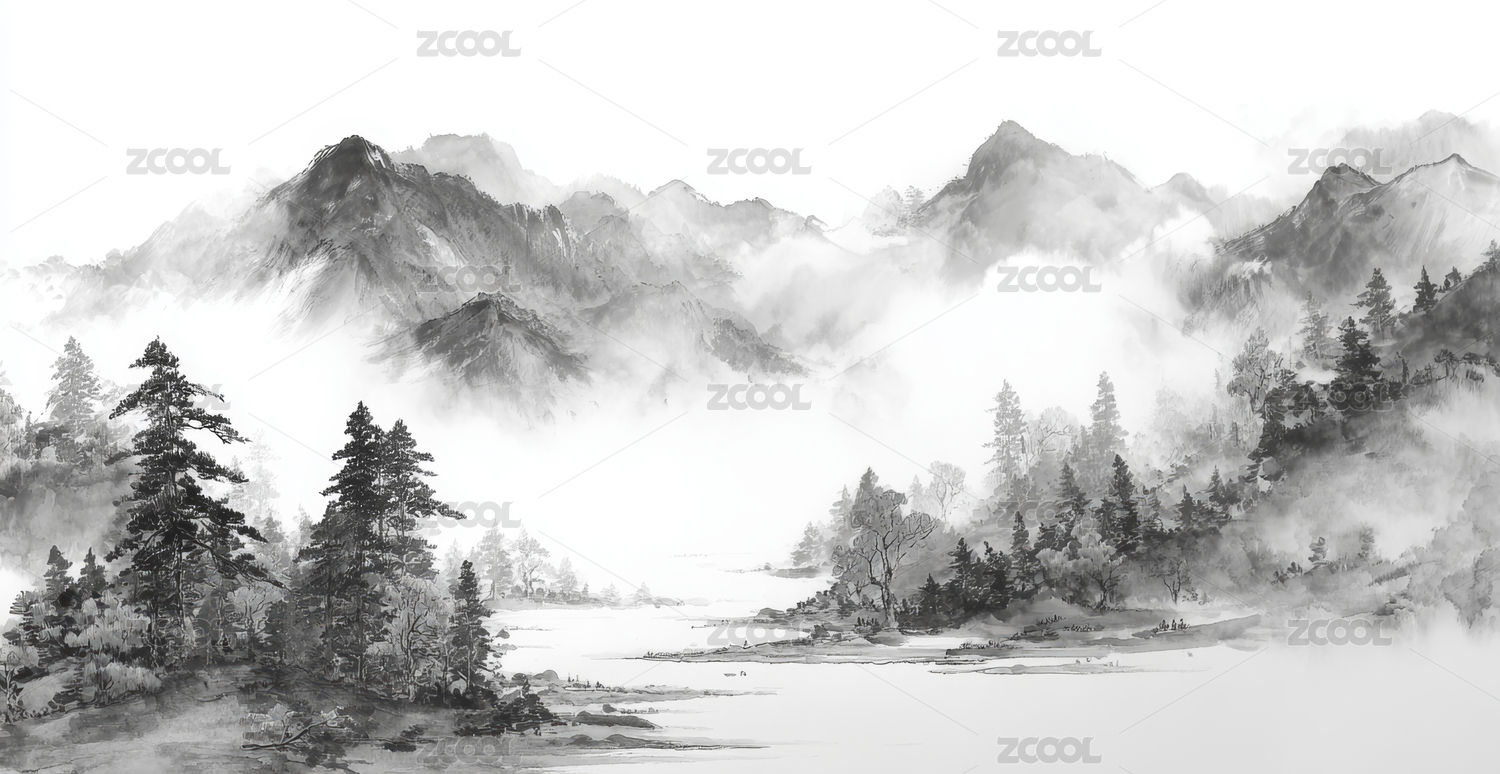 山水水墨诗意风景场景