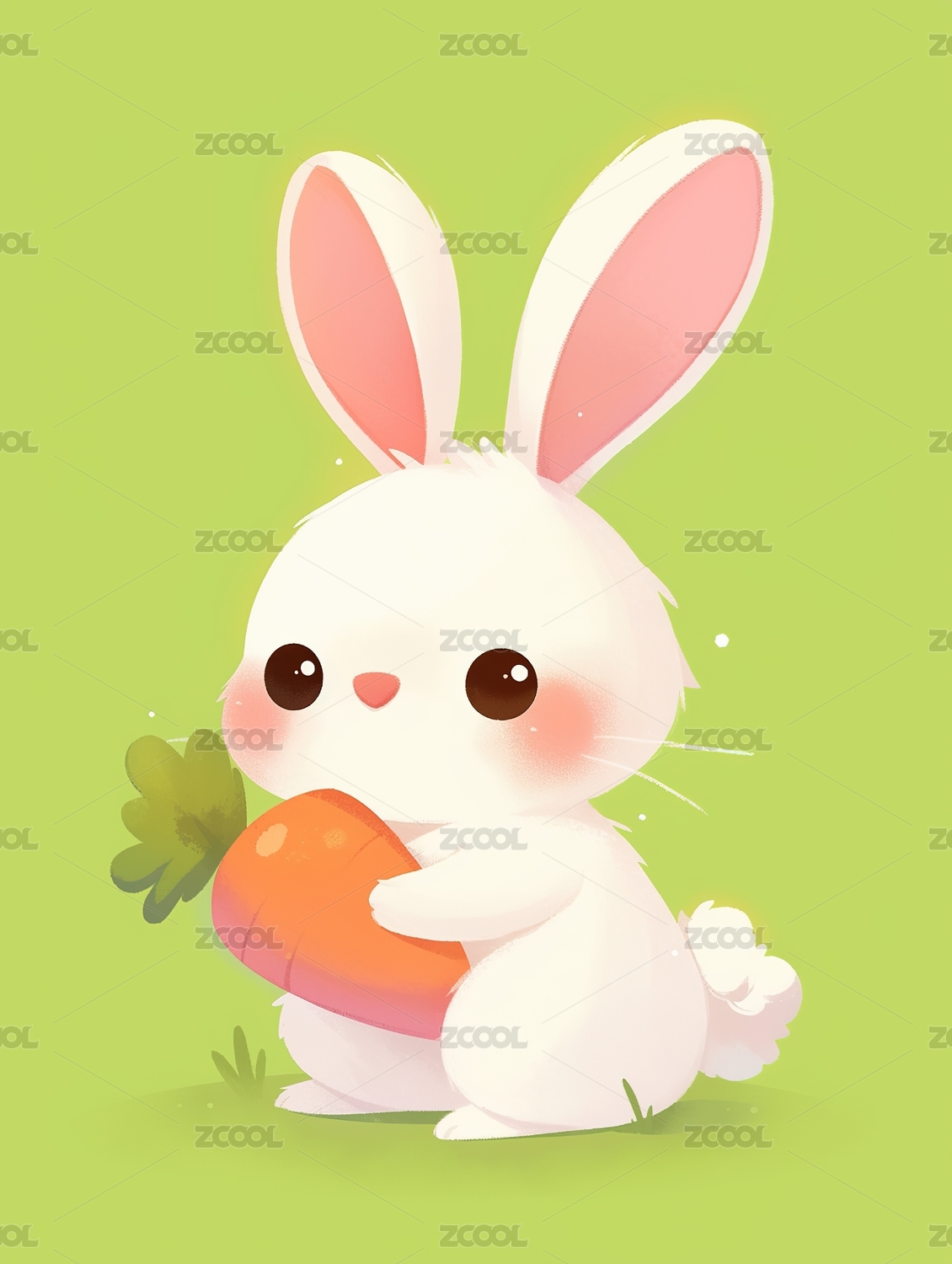 粉色兔子可爱唯美野生动物3D卡通插画壁纸