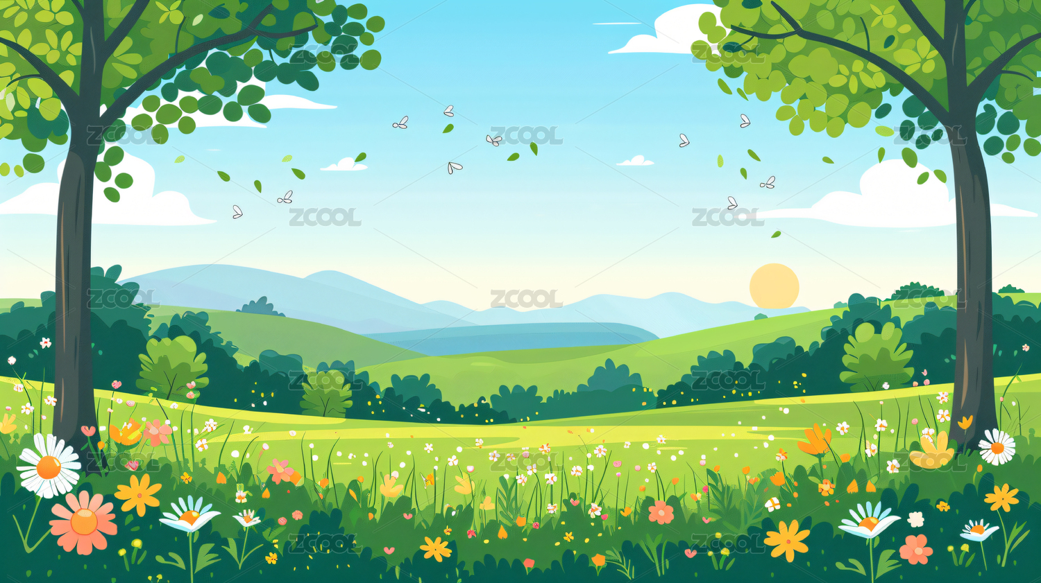 户外,森林,树,插画,植物,绘画插图,地形,绿色,风景,夏天