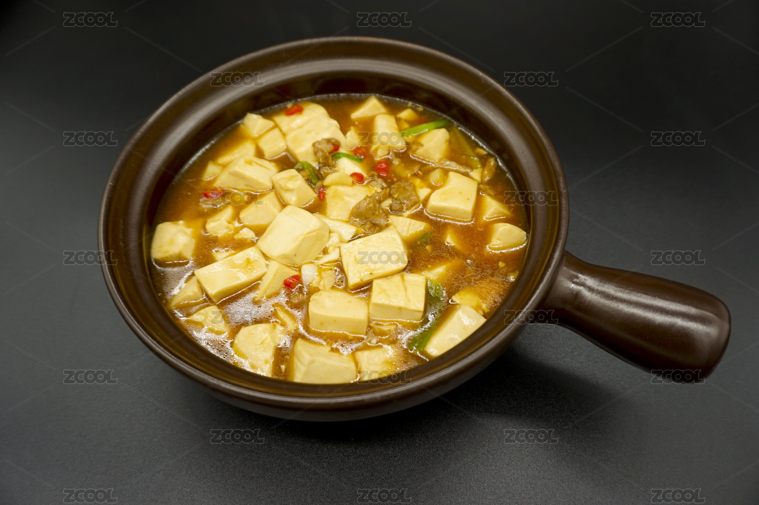 黑色背景中的中国传统菜肴麻婆豆腐特写