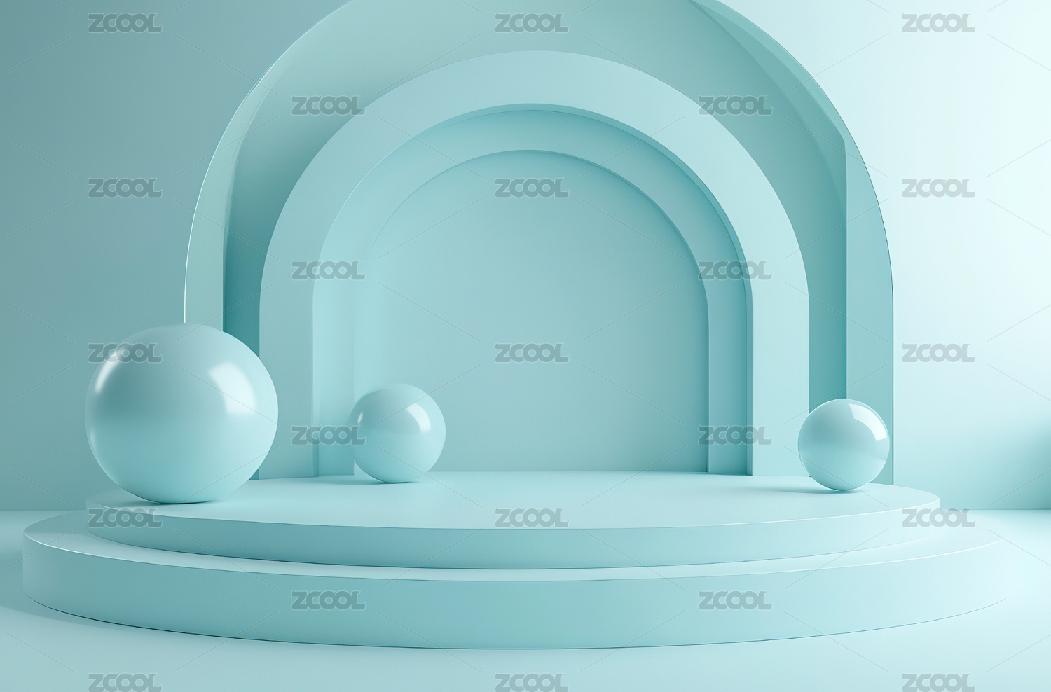 浅蓝几何阶梯与球体组合