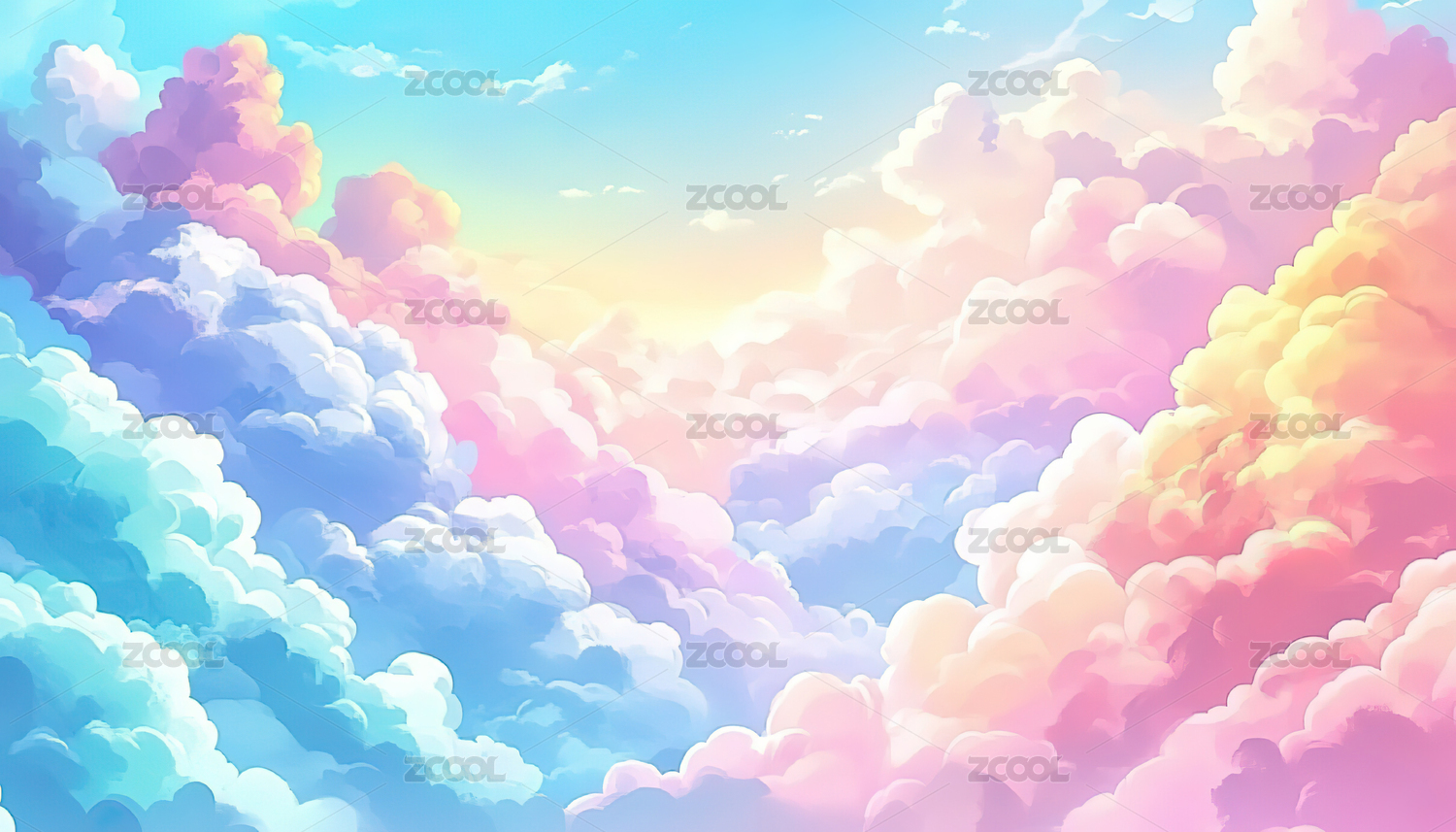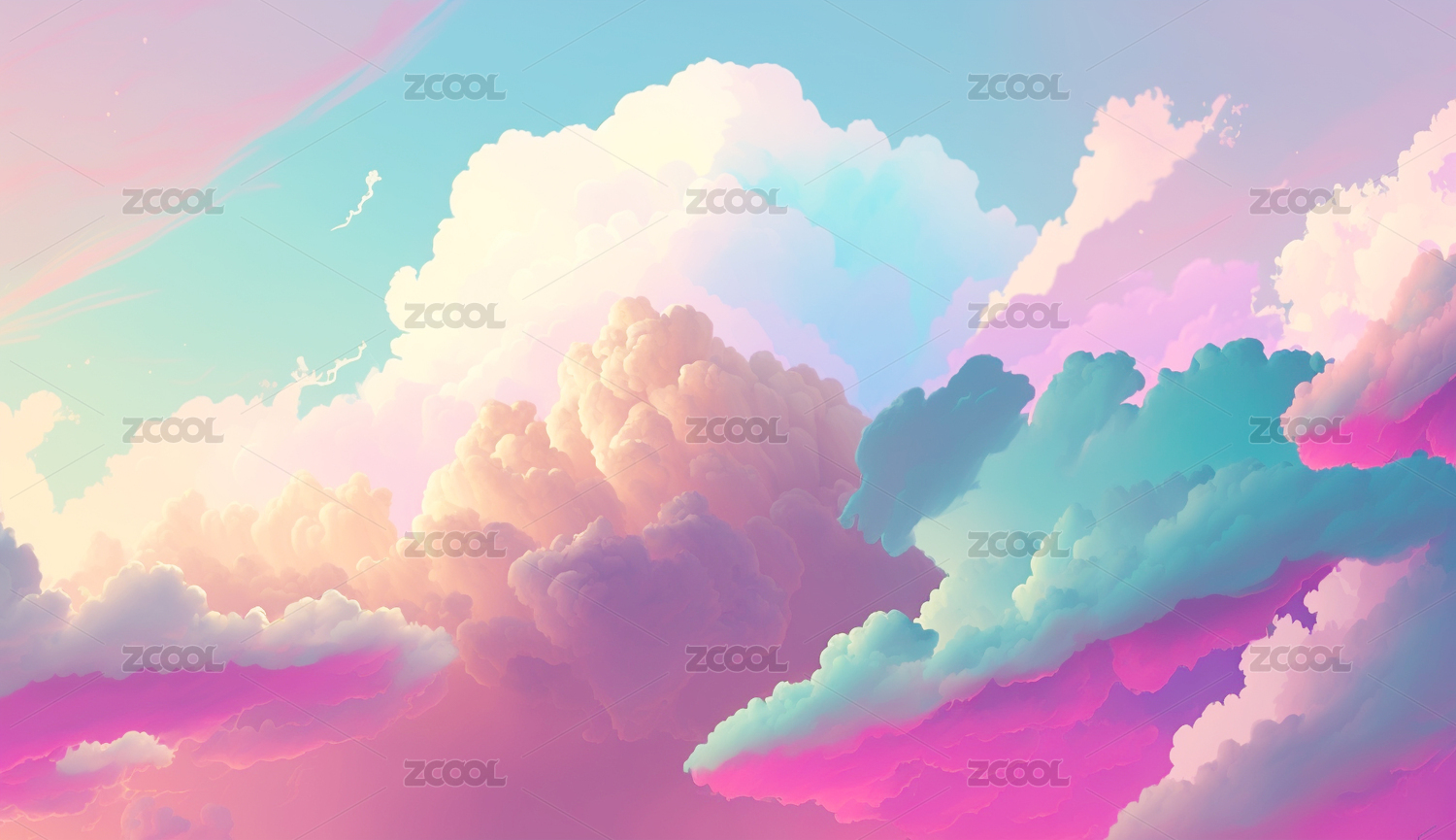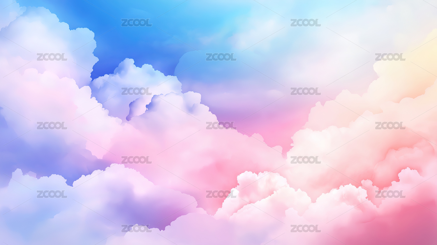 水彩风格抽象天空彩云PPT海报主视觉背景