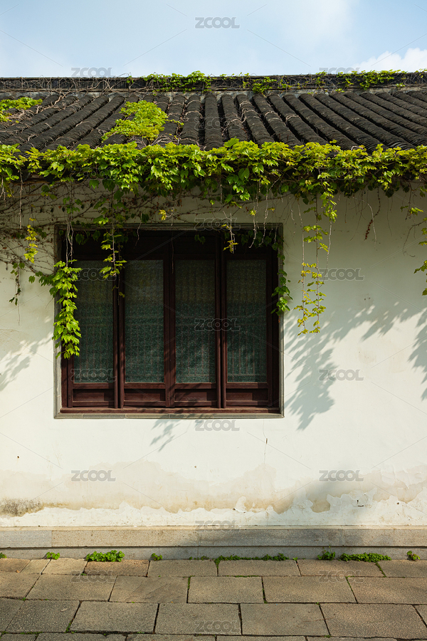 房屋墙壁爬山虎,绿色植物自然风景背景,庭