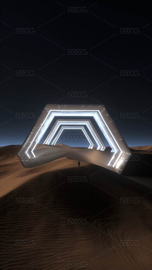 沙漠中发光几何图形