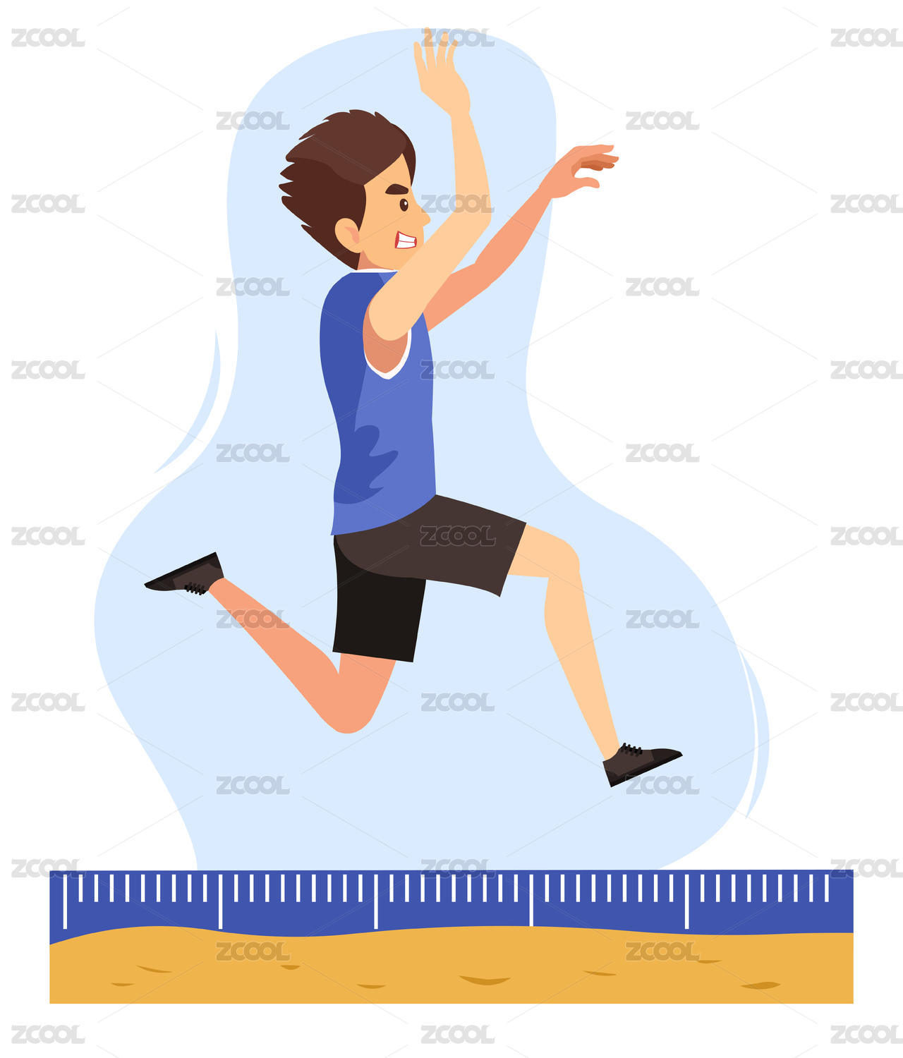 比赛竞技跳远运动员减肥卡通插画矢量图