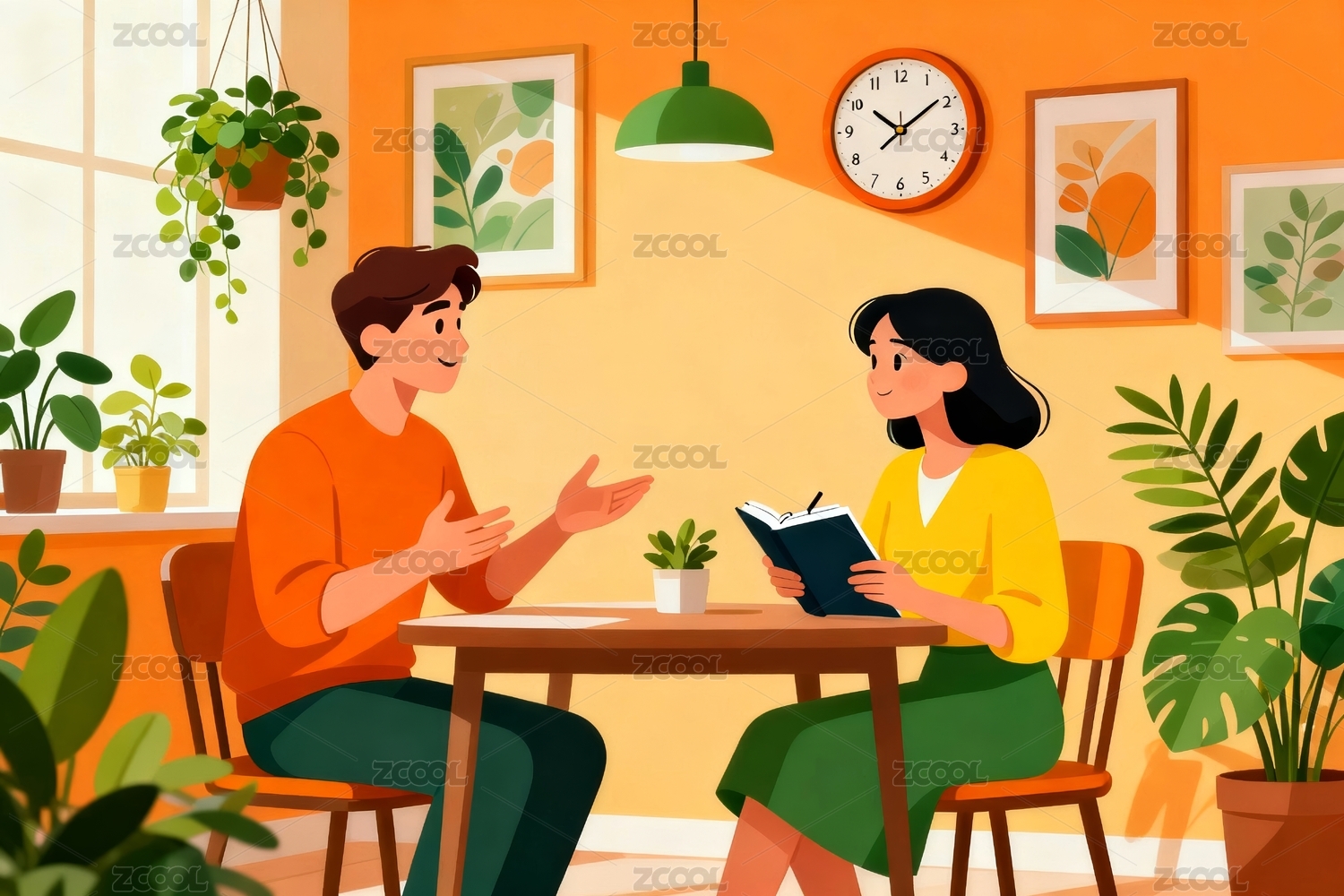 情人节,卡通,插画,约会,七夕,情侣,爱人,咖啡馆,绚丽,对比色