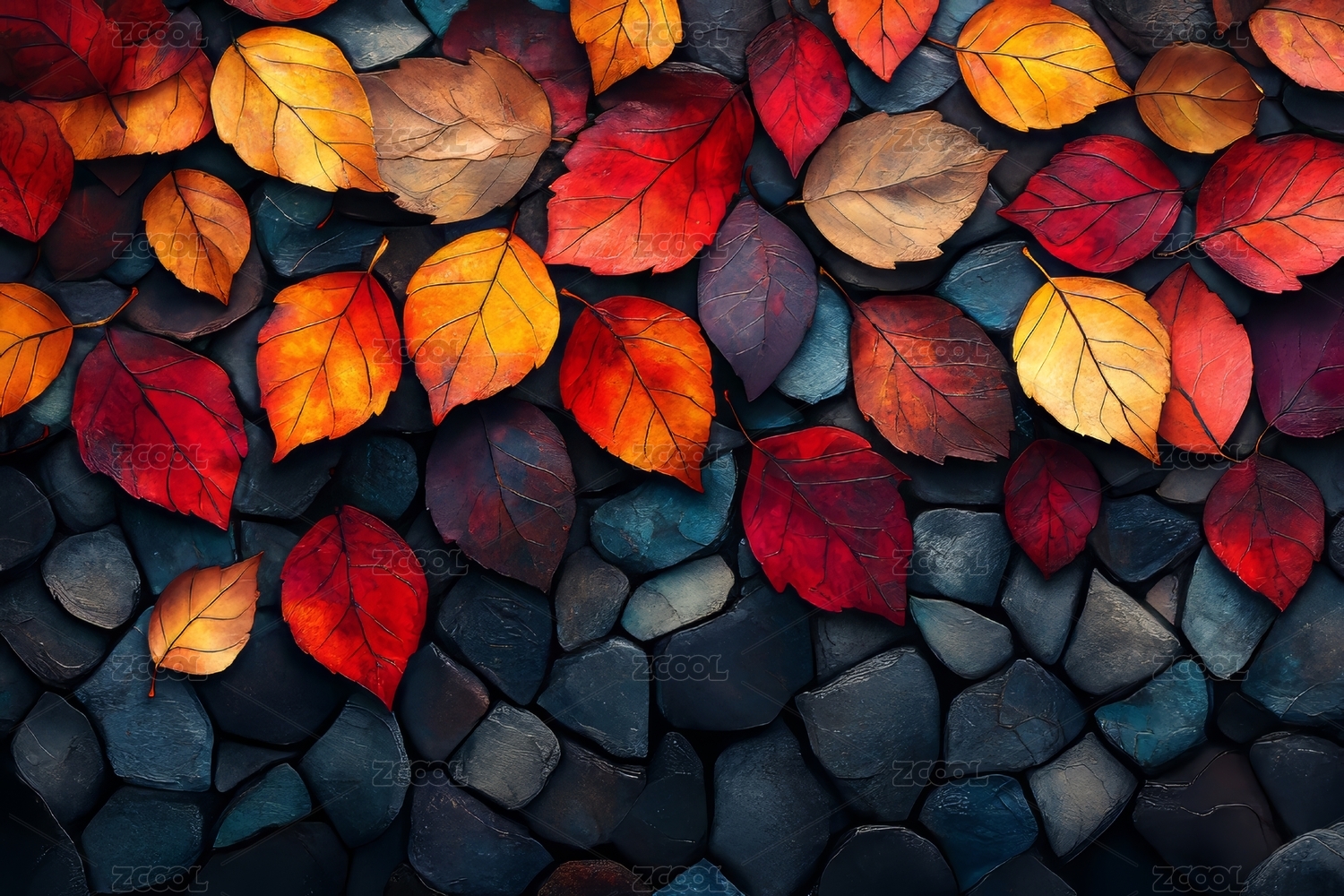 AIGC202402,秋季,砖,地面,金黄色,枫叶,手绘,秋天,红叶,叶子