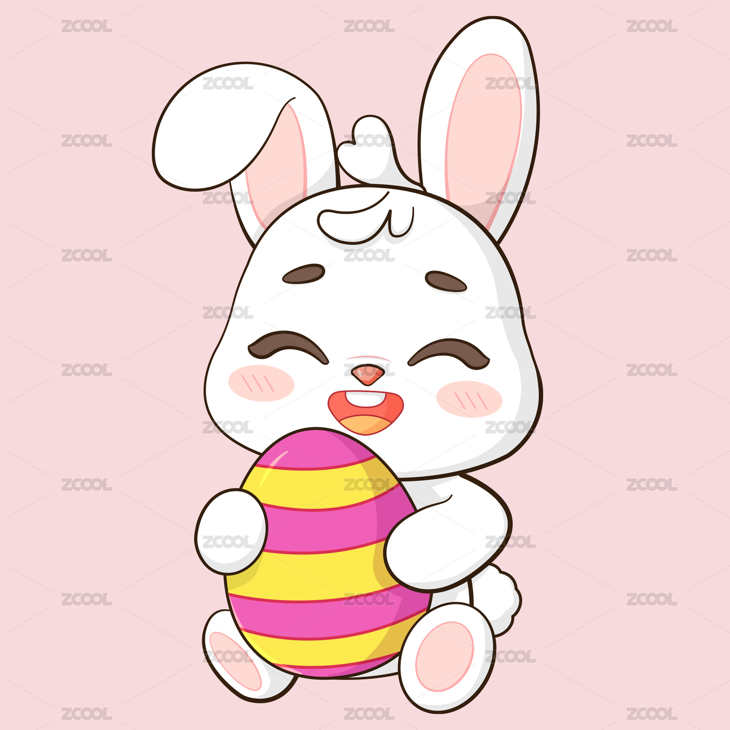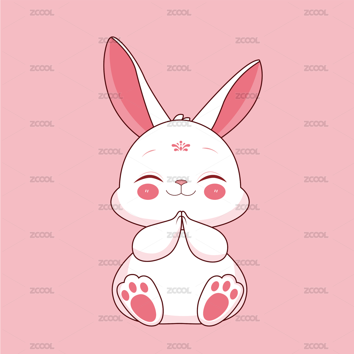 卡通风中秋节大眼睛大耳朵小白兔扁平化插画