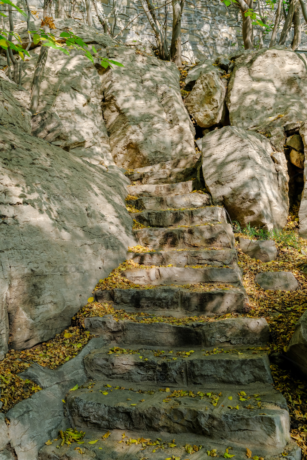山东枣庄冠世榴园风景区青檀寺石阶秋色