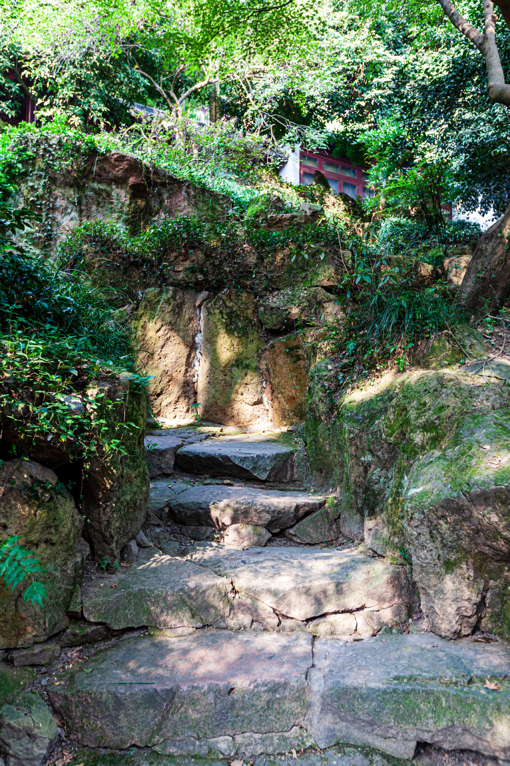山谷中的幽静石头小路台阶石壁阶梯山石嶙峋