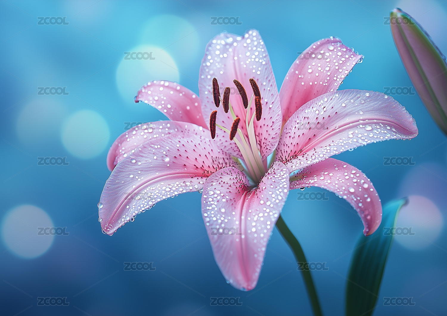 清晨露珠的粉色百合花