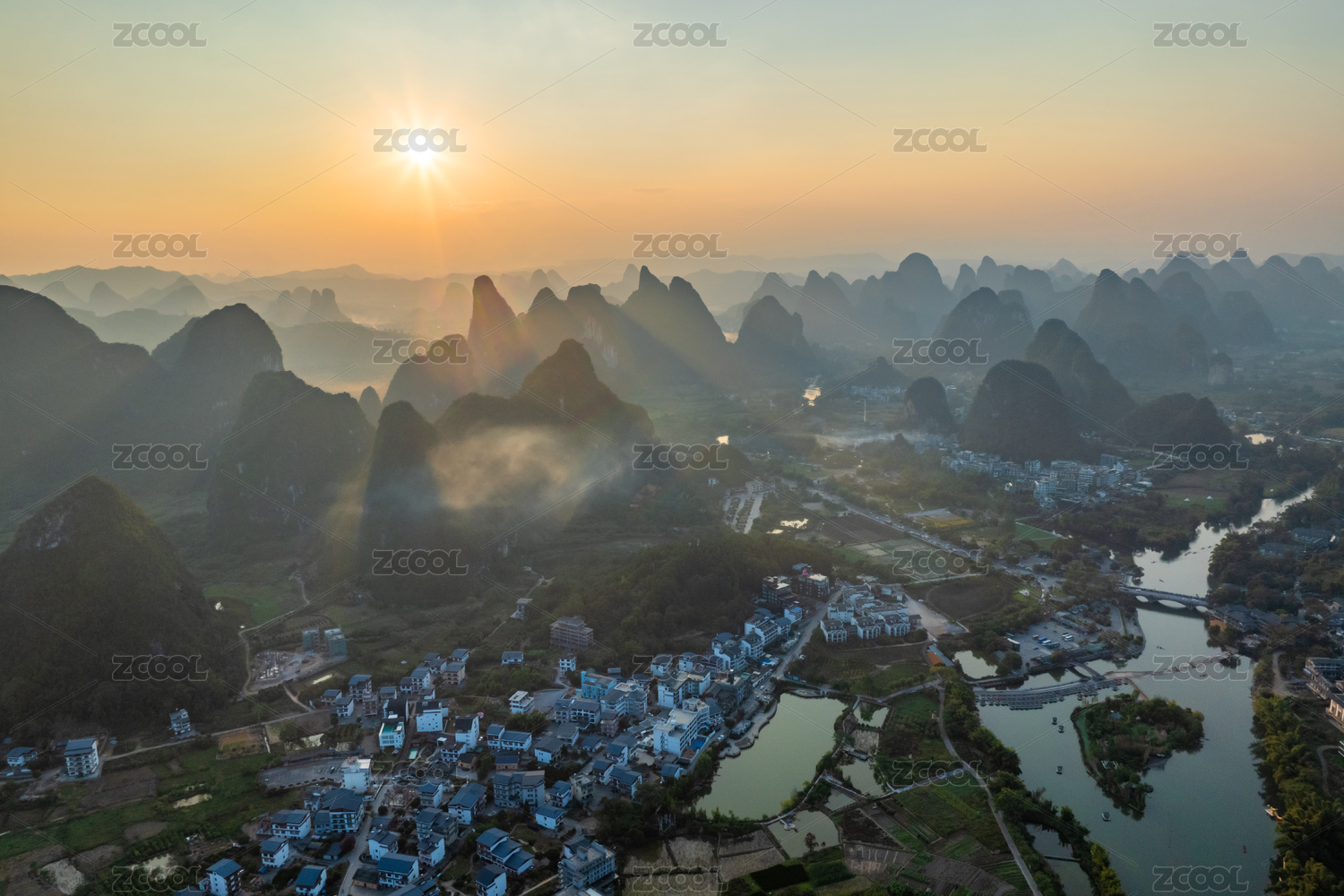 桂林,兴坪,阳朔,航拍,傍晚风光,兴坪风光,自然风景,山水桂林