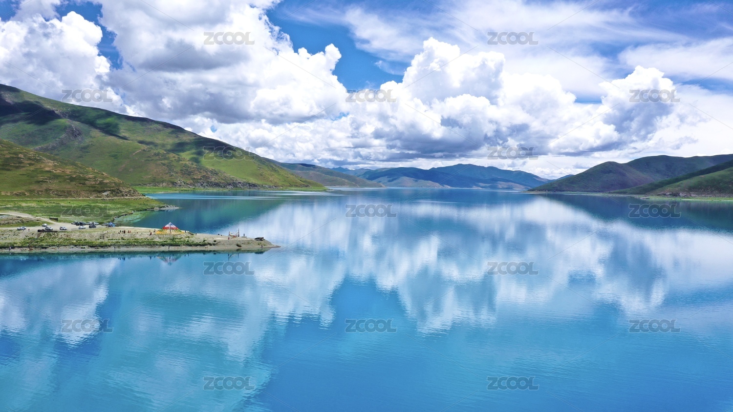中国,西藏,山南地区,浪卡子县,羊卓雍措,蓝,湖,云,倒影,反射
