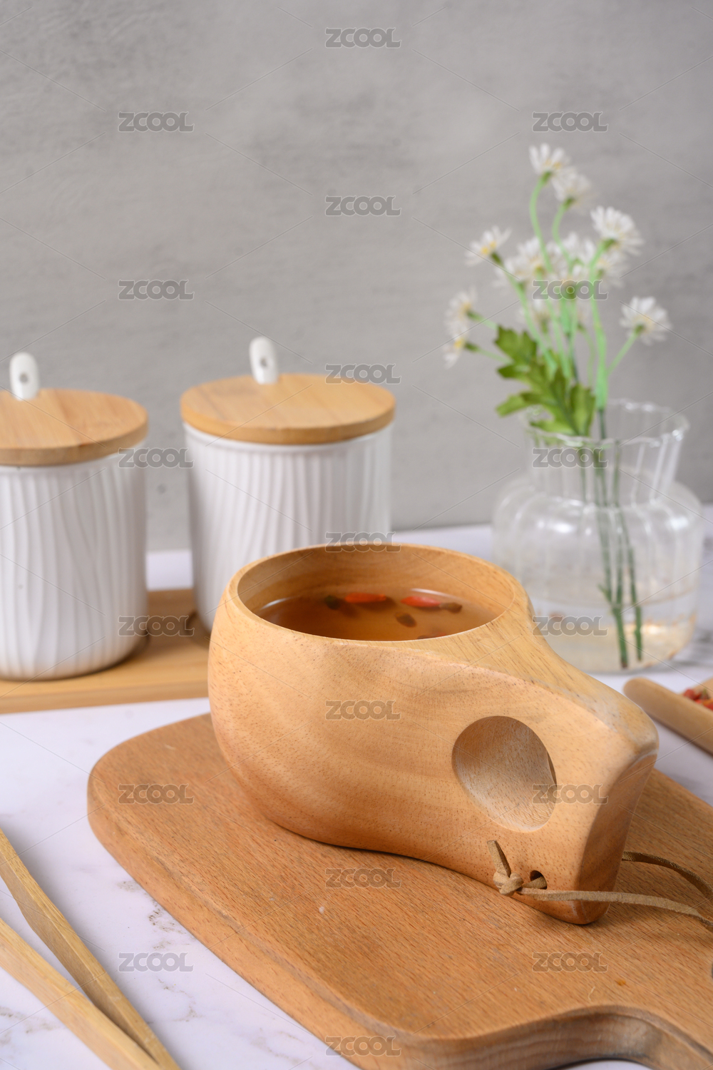 桌面上个的杯子里的甘甜可口的龙胆草茶