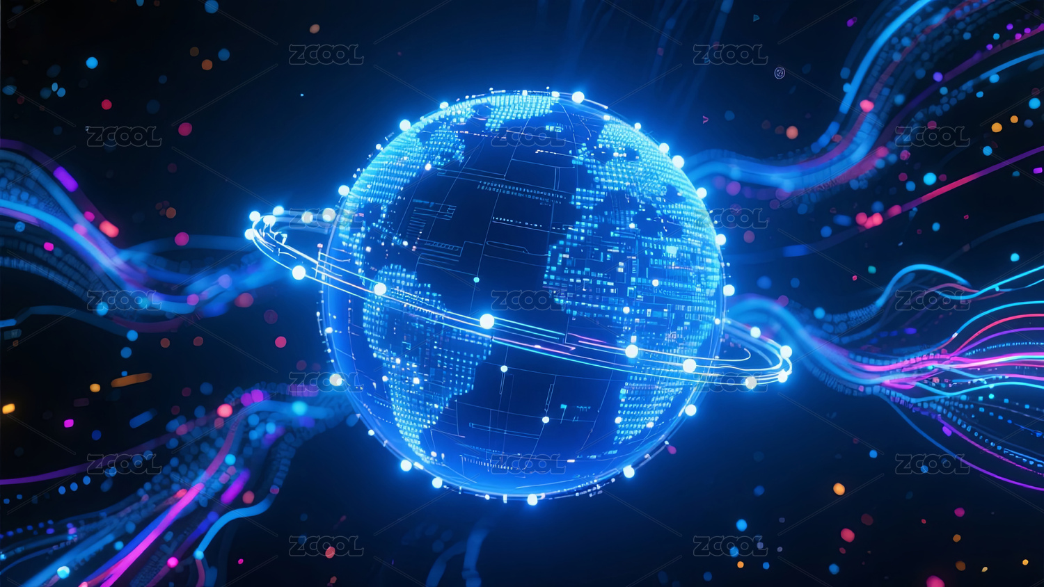 科技感地球与数据光束
