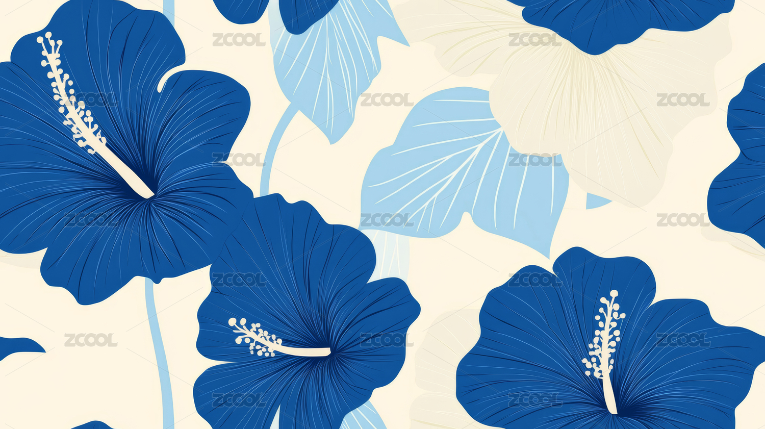 蓝色水彩花朵图案背景