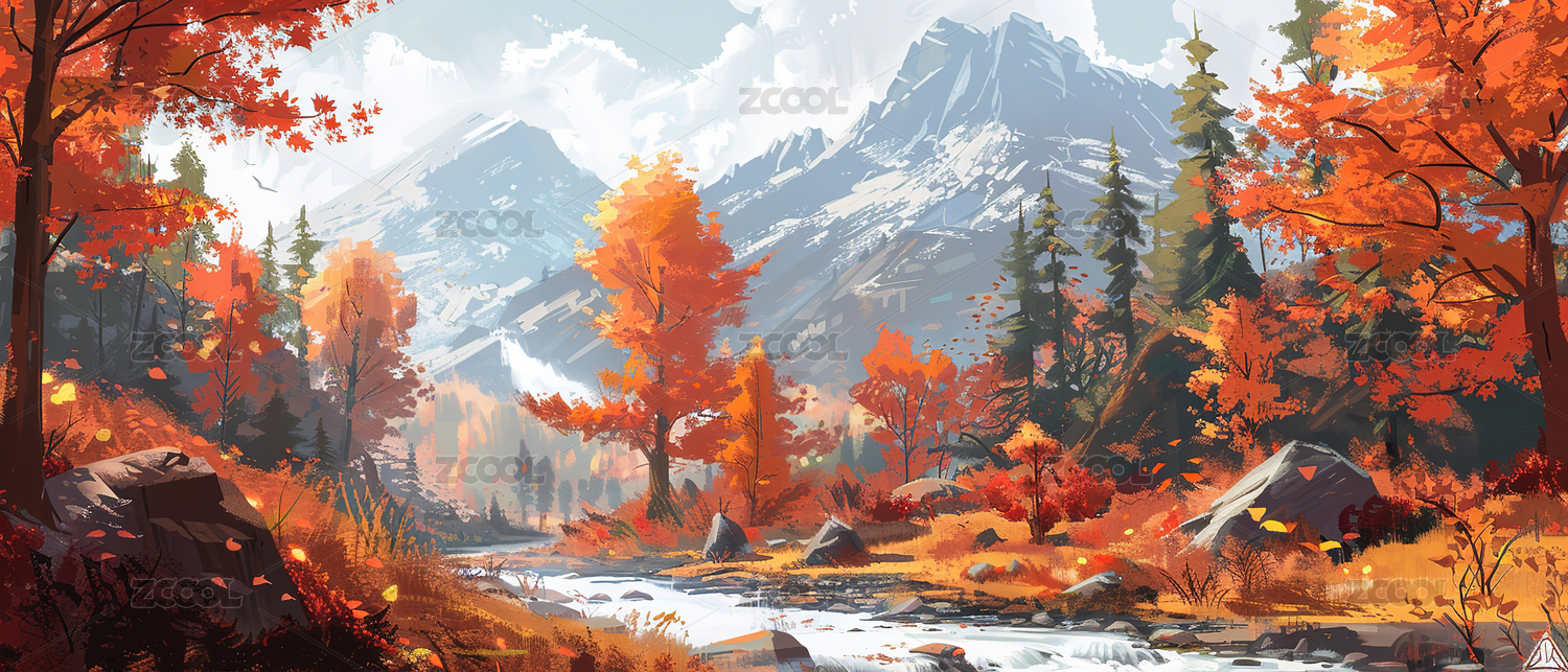 秋日山谷风景油画