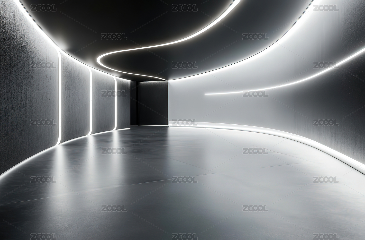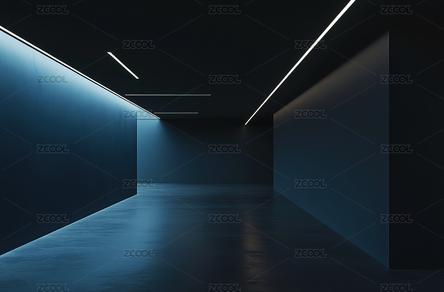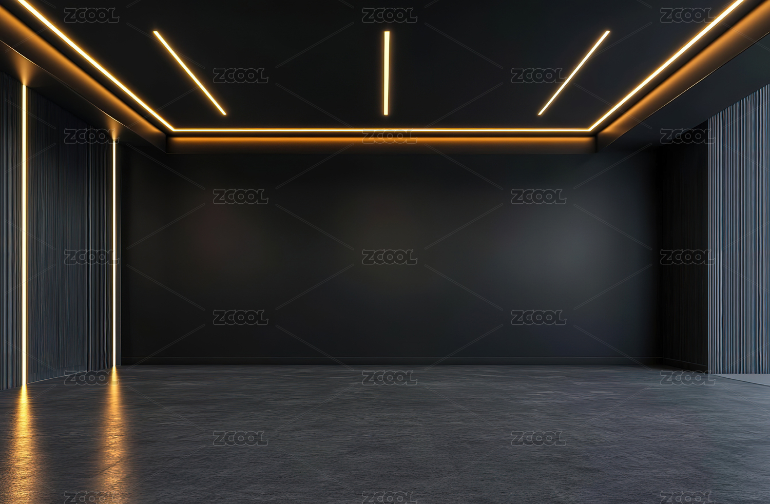 黑金现代几何建筑空间平台3D渲染抽象背景