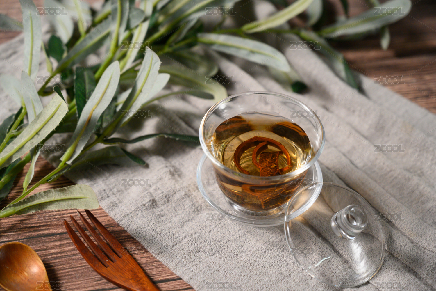 桌面上的盘子里的美味可口的陈皮三宝扎茶