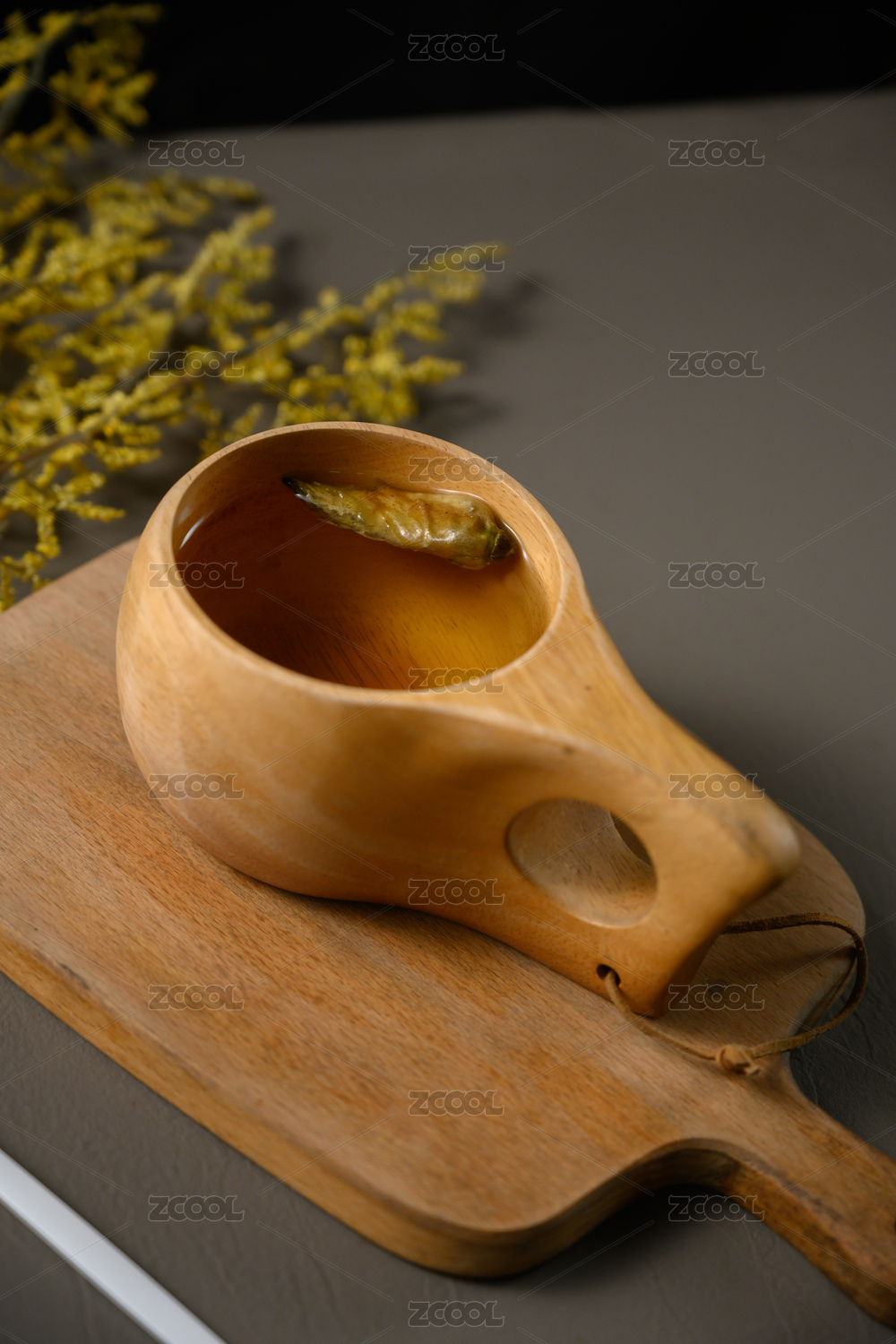 桌面上的杯子里的甘甜可口的秦皮茶