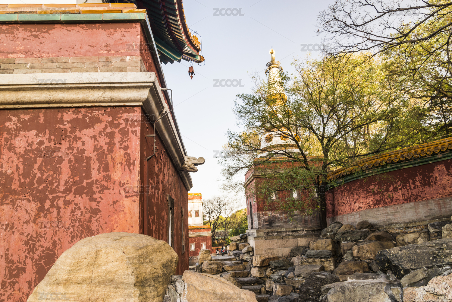 中国北京颐和园四大部洲宗教庙宇塔晴天阳光光线