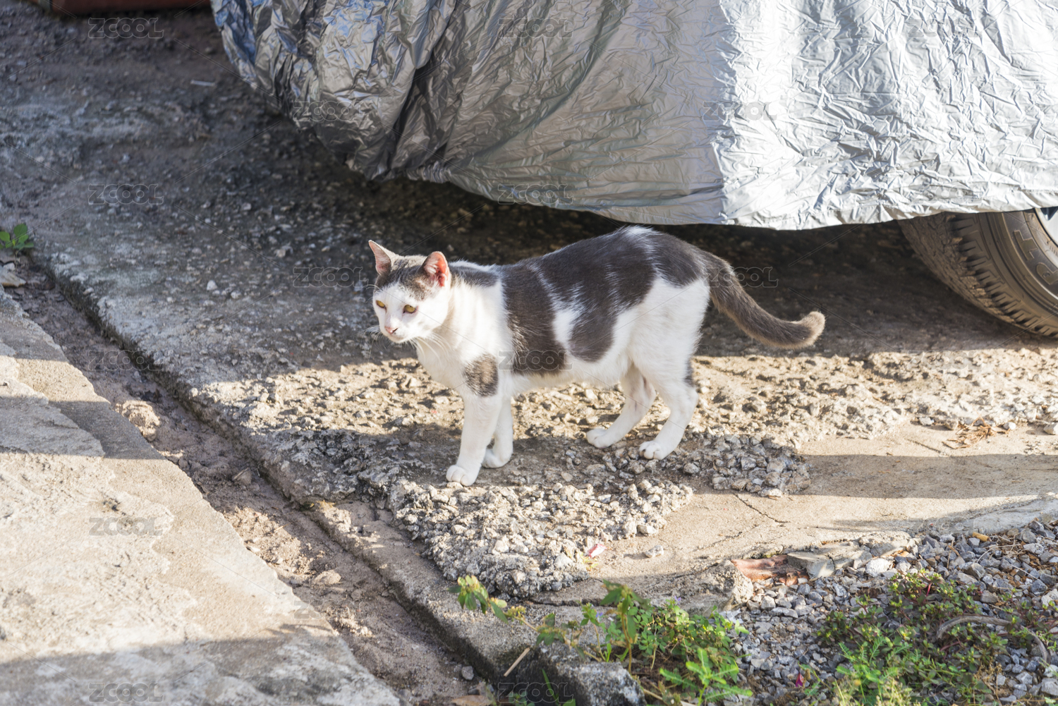 路边凶巴巴的黑白色小野猫