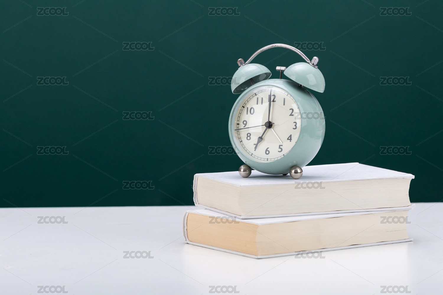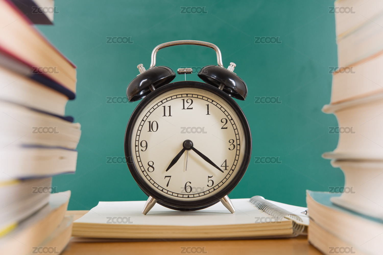 课桌上的课本和闹钟